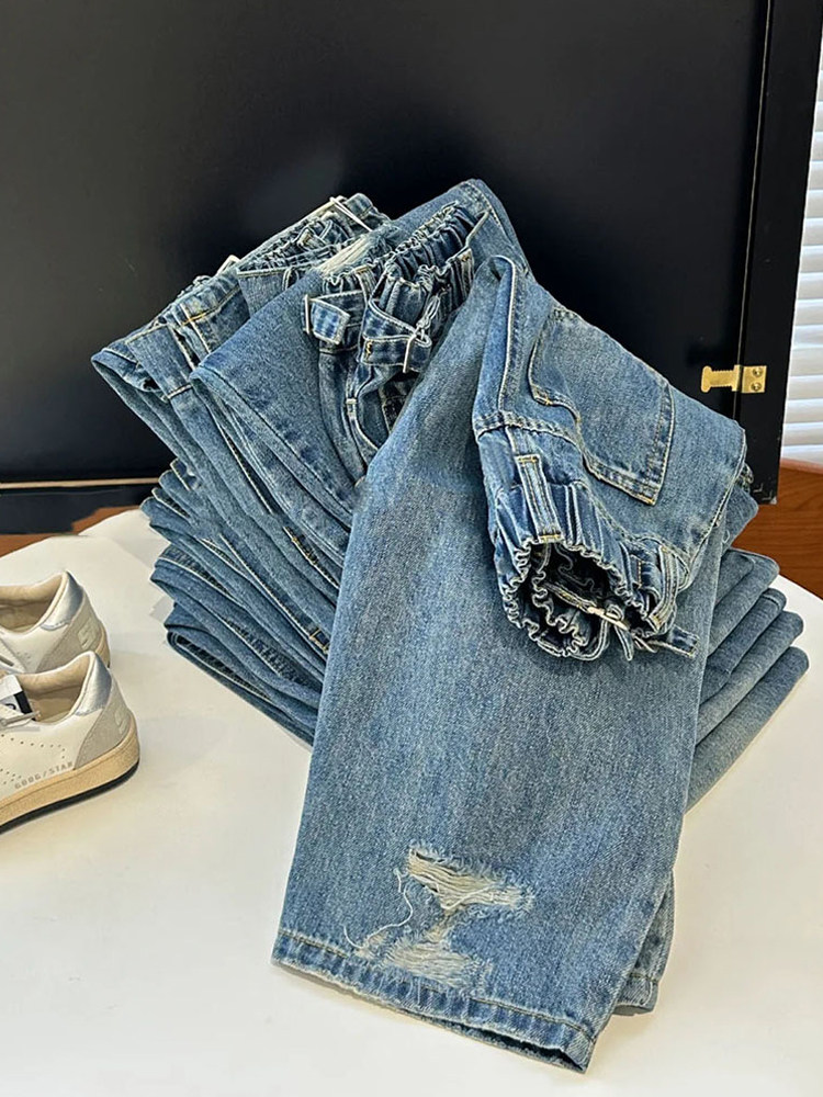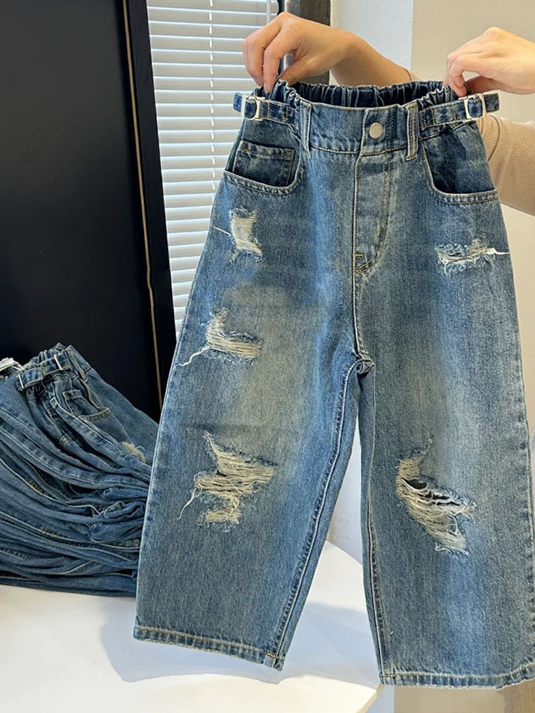 Весенние джинсы подходит для мужчин и женщин, штаны для отдыха, детская одежда, оверсайз