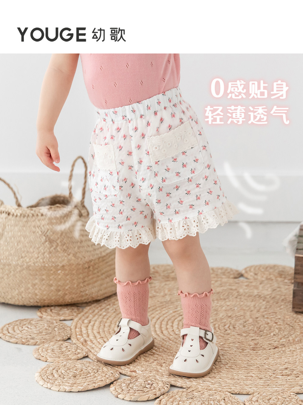 Милые легкие и тонкие дышащие шорты для раннего возраста, детские штаны, цветочный принт, оверсайз