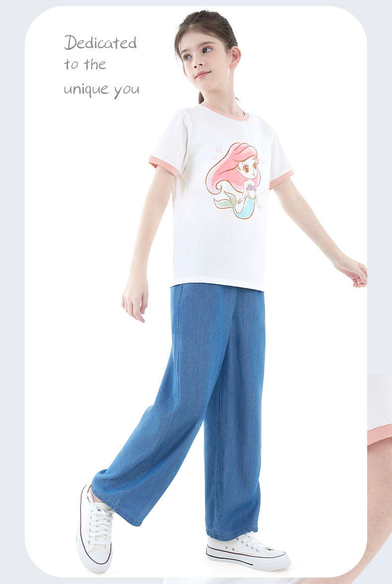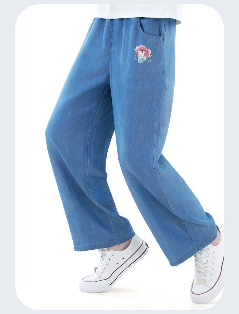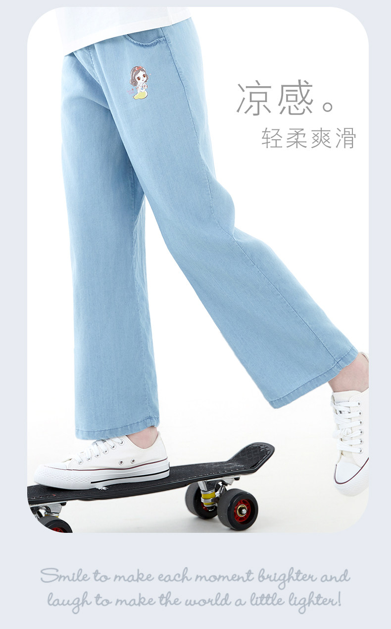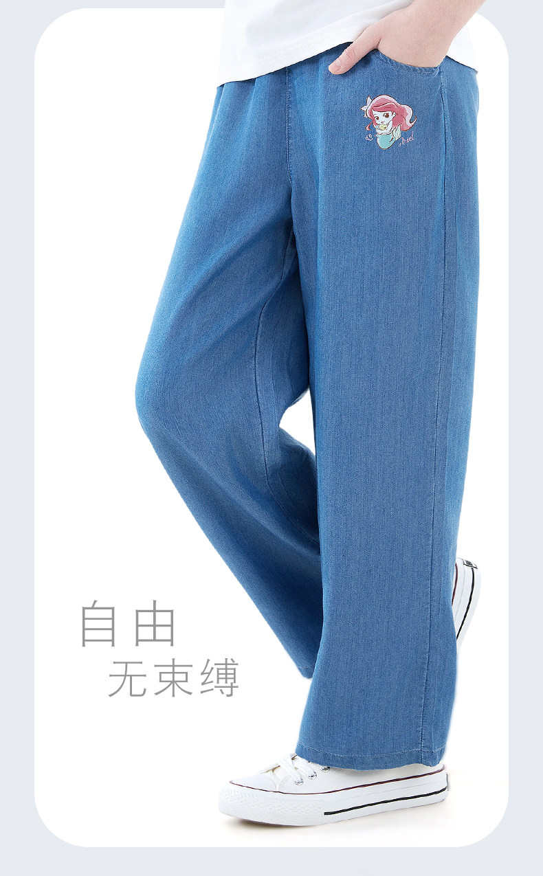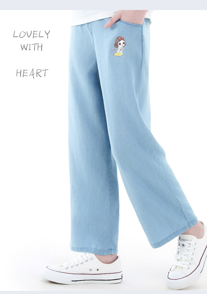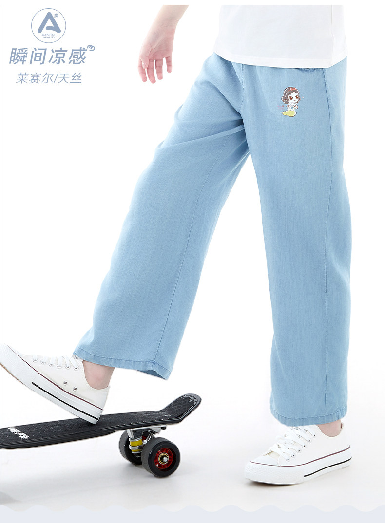 Детские штаны, летние тонкие шелковые джинсы, подходит для подростков, свободный прямой крой, детская одежда