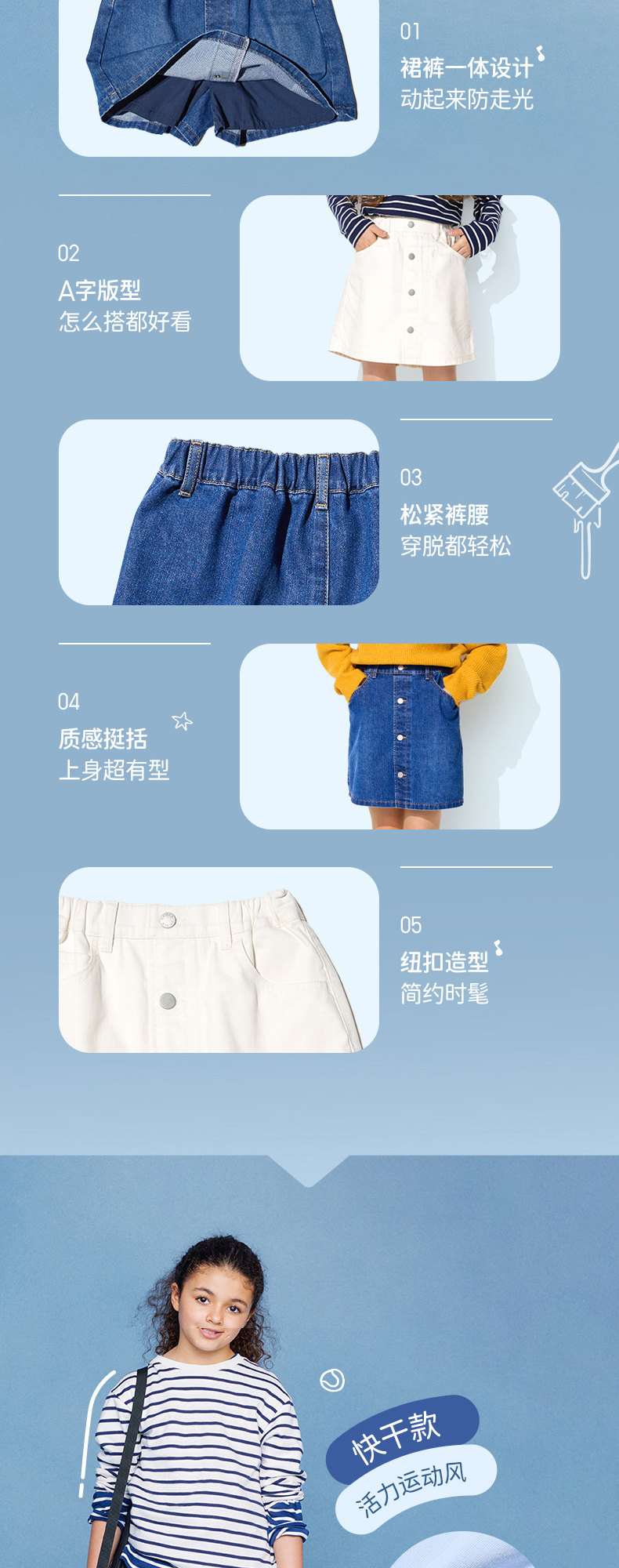 Uniqlo, спортивная маленькая юбка, теннисная мини-юбка, детская одежда, быстрое высыхание