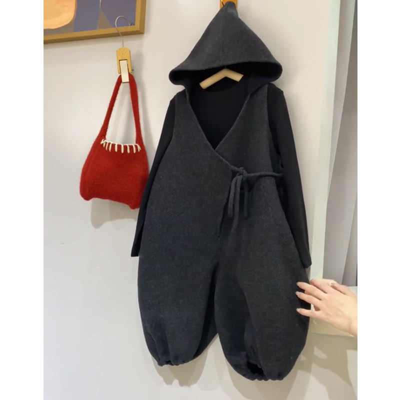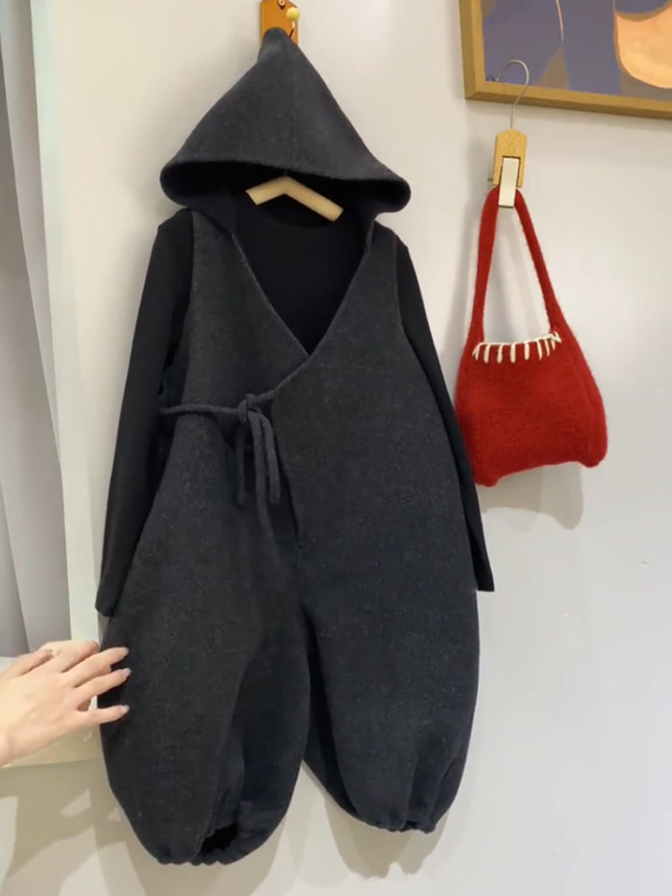 Осенние демисезонные штаны подходит для мужчин и женщин, детский шерстяной комбинезон с капюшоном, в корейском стиле, в западном стиле