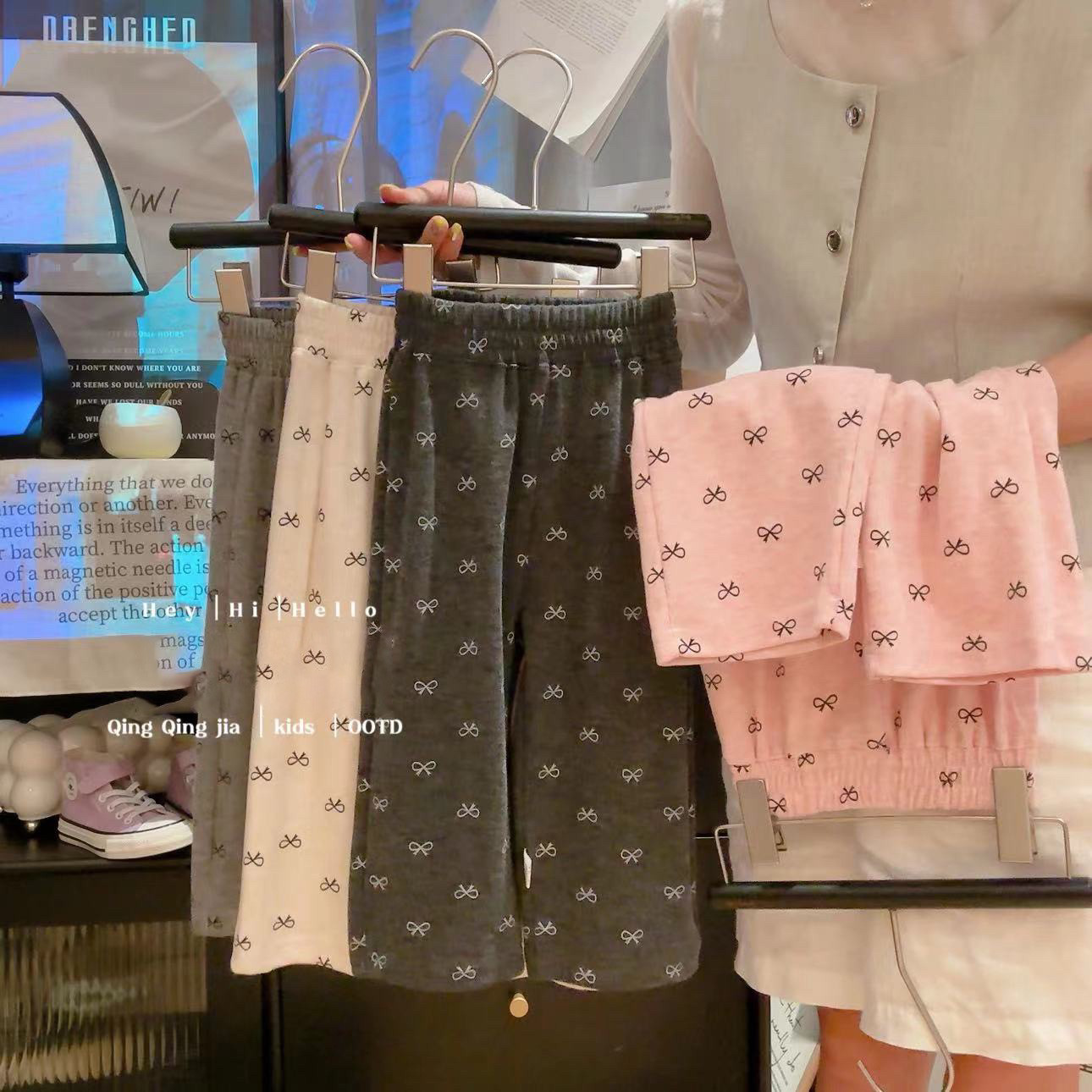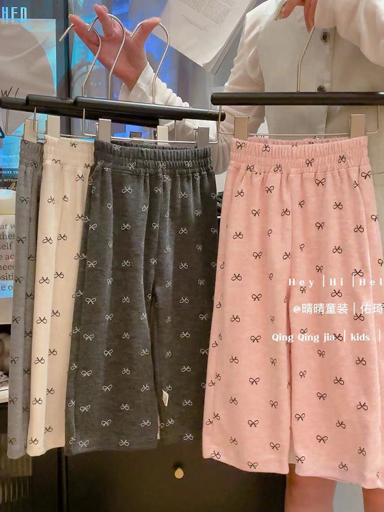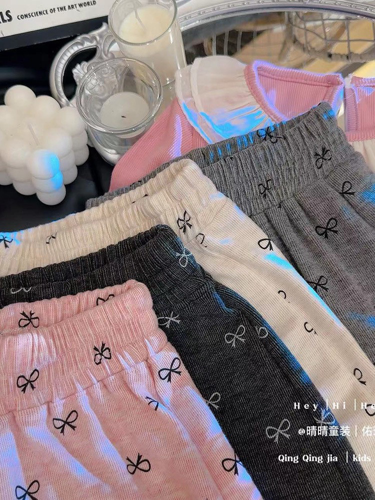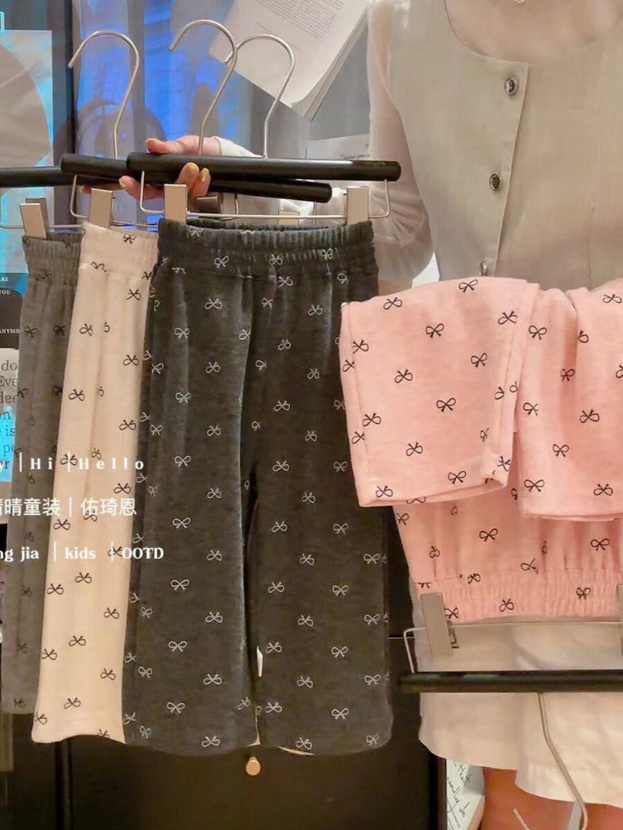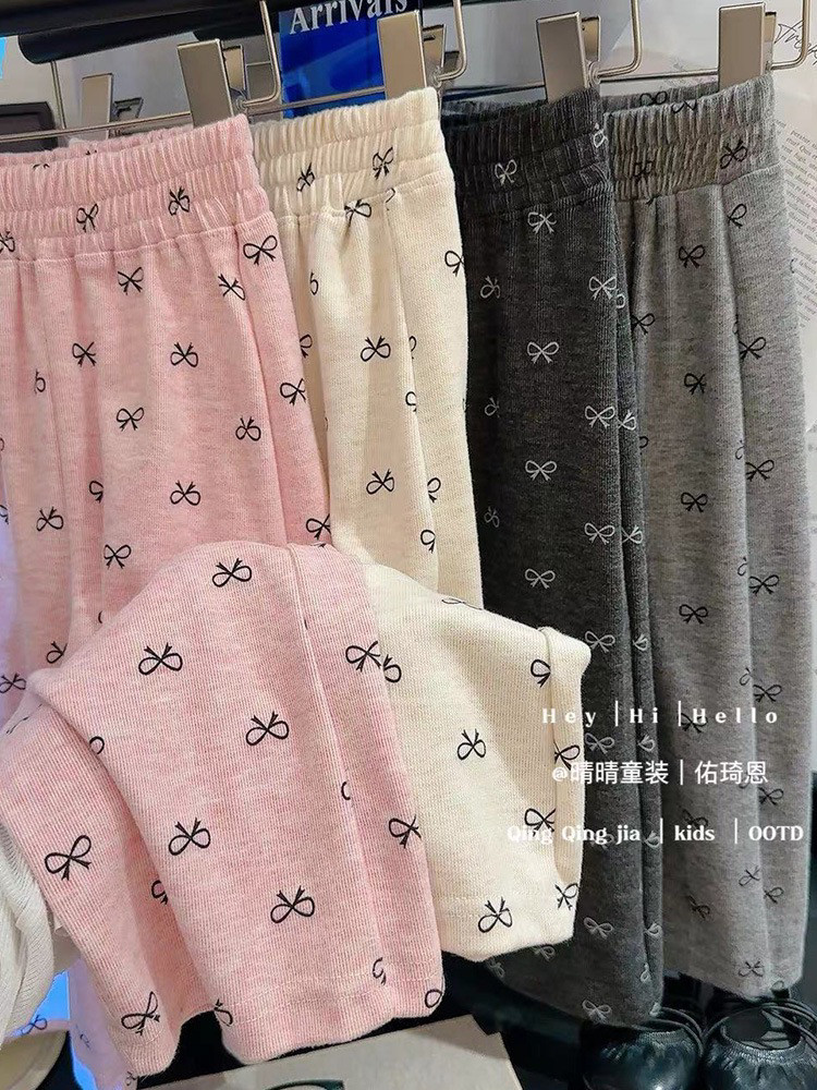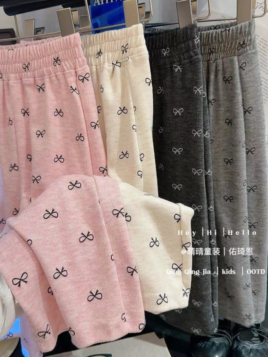Осенние тонкие детские штаны с бантиком, семейный стиль, в западном стиле, свободный прямой крой