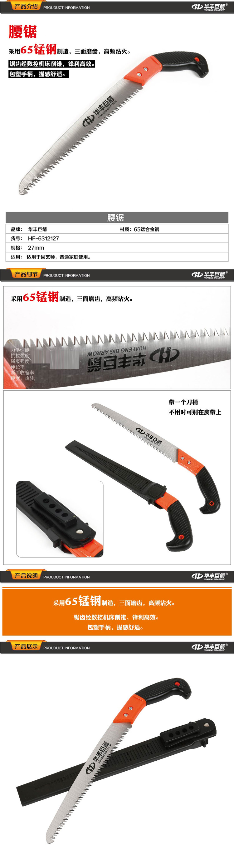Huafeng Giant Arrow 270 -мм поясничные пилы ручной работы, коктейль Видит, как филиалы увидели садовый сад