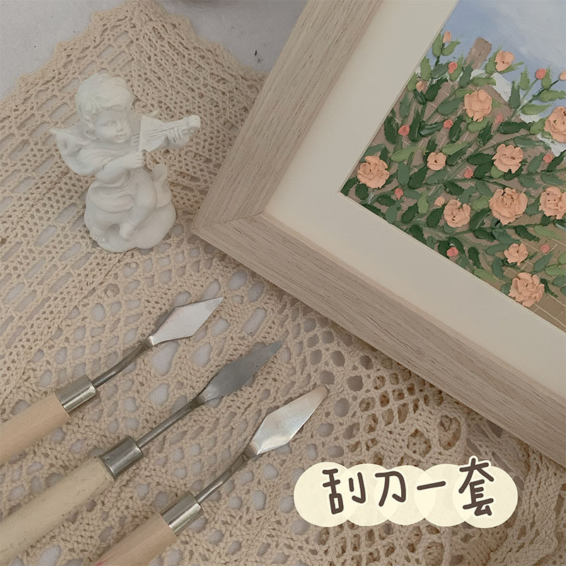 Масляная пастель, маленький скребок, художественный акрил, пигментированная гуашь