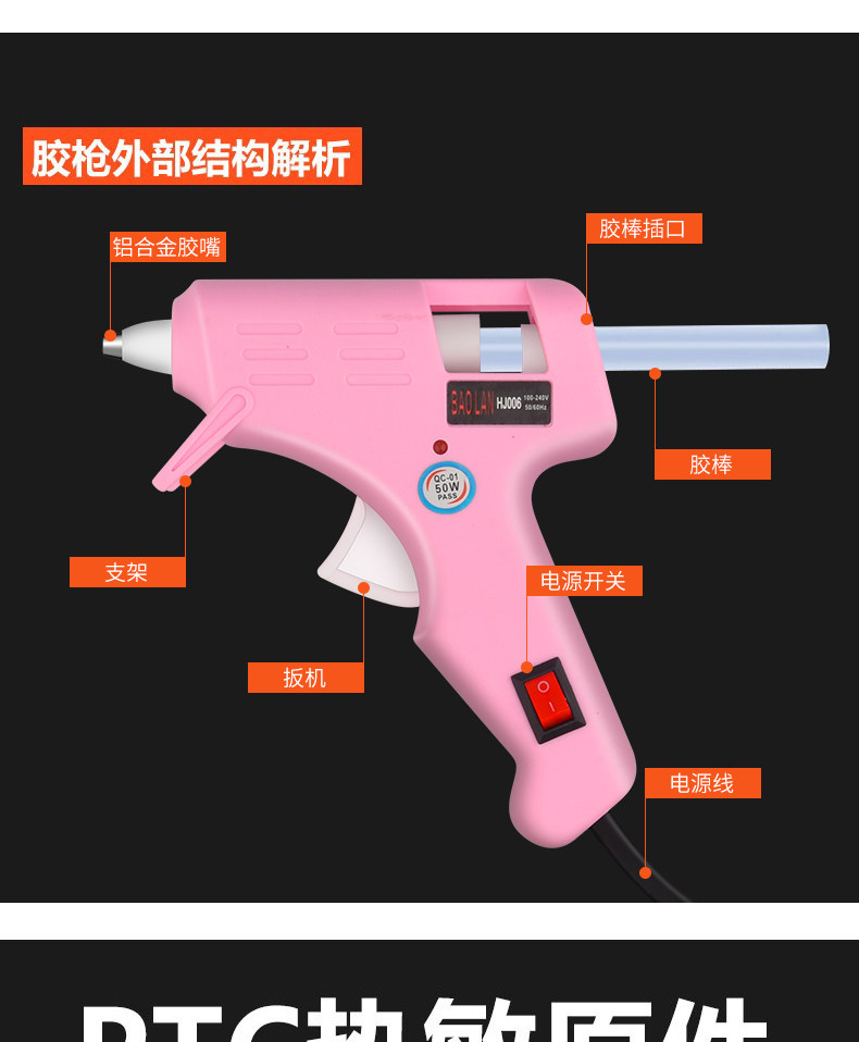 Пластиковая пистолетная палка Электрический терморастворимый резиновый силиконовый палоч вискоза горячий расплавленный клей термопогревательный нагрев твердый раствор пластик.