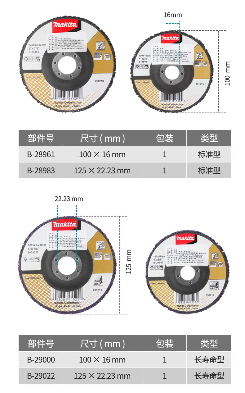 | Цвет: | Макада Стандарт [черный 100 × 16 мм] B-28961, Стандартный тип Makita [Black 125 × 22,23 мм] B-28983, Стандартный тип Makita [черный 180 × 22,23 мм] B-28999, Износостойкий, сиреневый, 22.23mm, Макита износостойкость [фиолетовый 100 × 16 мм] B-29000, Износостойкий, сиреневый, 22.23mm |