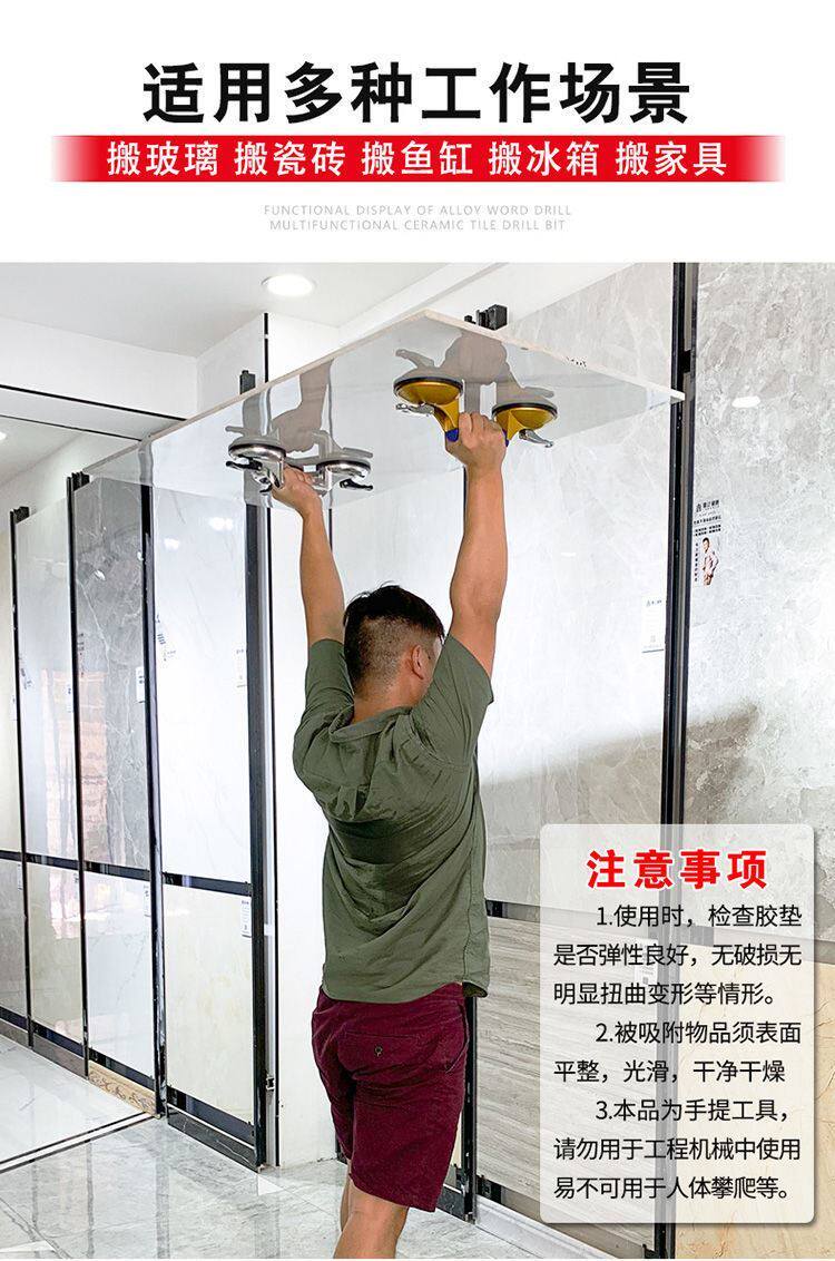 Всасывающий чашка Fixer Glass Мощный всасывающий подъемник и двойной сгущенной тройной керамический плиточный пол