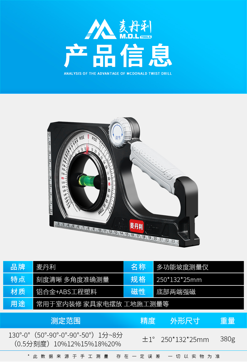 MAI DANLI Многоофункциональный склонный измеритель высокого показателя с высоким уровнем инженерного наклона -кславочный алюминиевый сплав