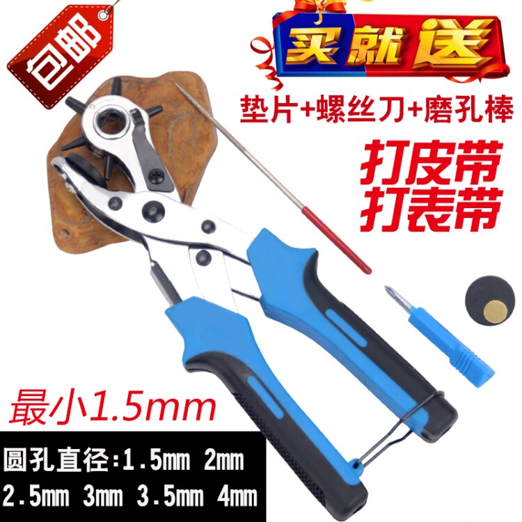 В плоскогубцах шесть отверстий,Может сыграть шесть круглых отверстий, размер удара составляет 1,5 мм/2 мм/2.5mm/3mm/3.5mm/4 мм (вы можете отрегулировать необходимый размер удара, повернув голову)