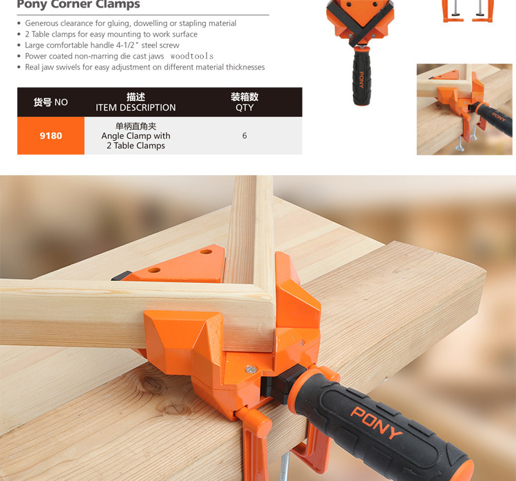 Американский бренд PONY, прямоугольный зажим, фиксированный зажим, деревообрабатывающий зажим, угловой зажим из цинкового сплава, монтажный зажим, зажим для фоторамки