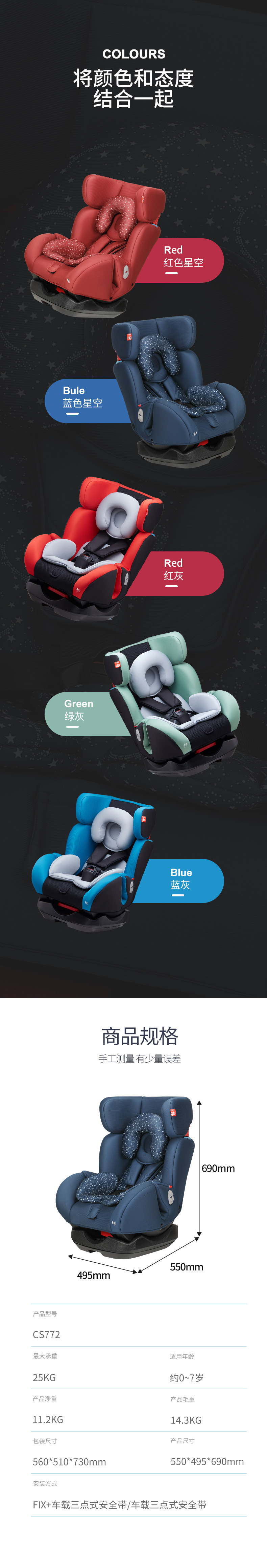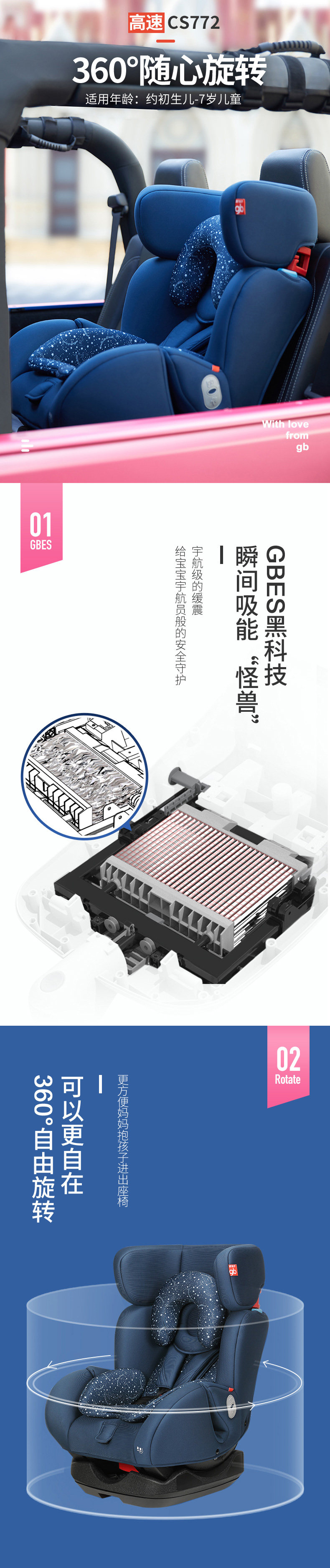 Высокоскоростное детское кресло, крутящиеся сиденье, 0-7 лет
