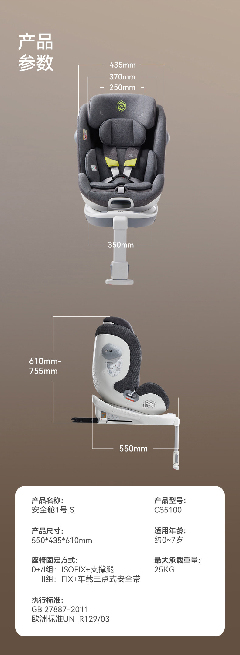 Безопасное детское высокоскоростное крутящиеся кресло, 0-7 лет