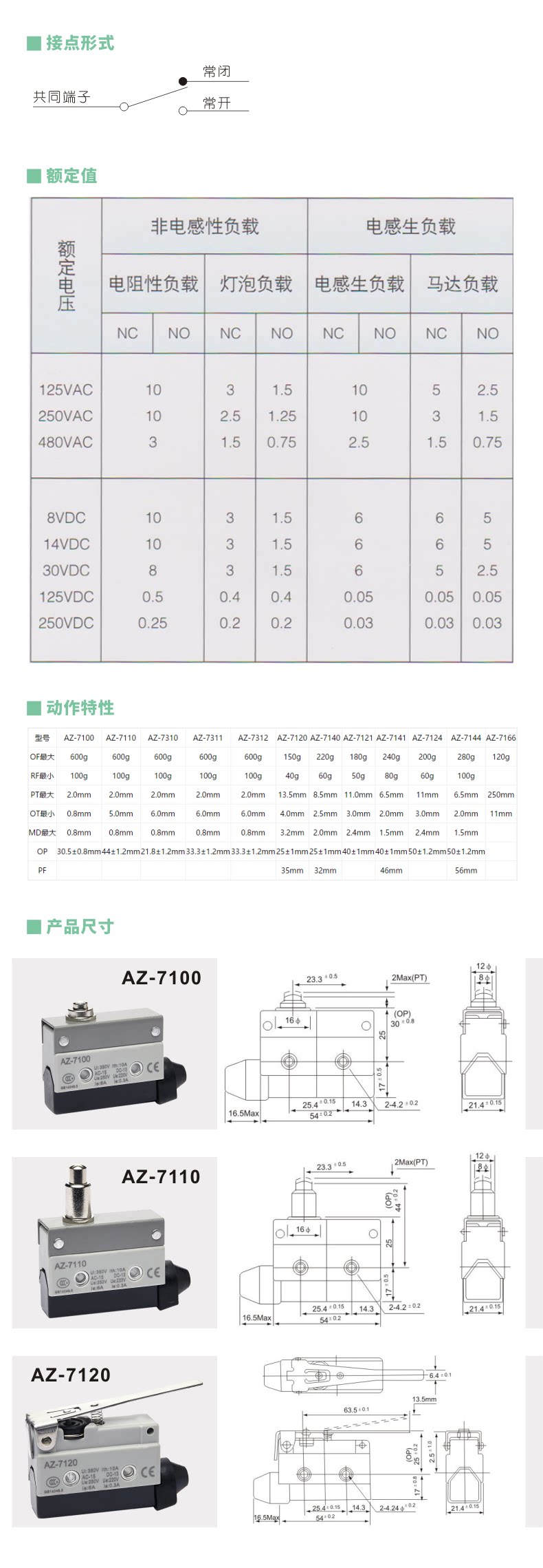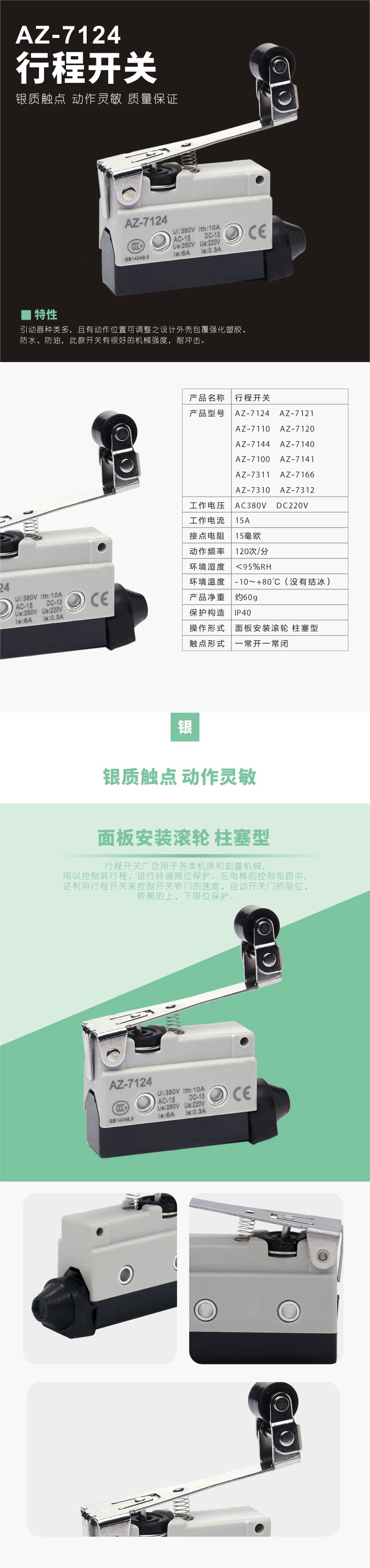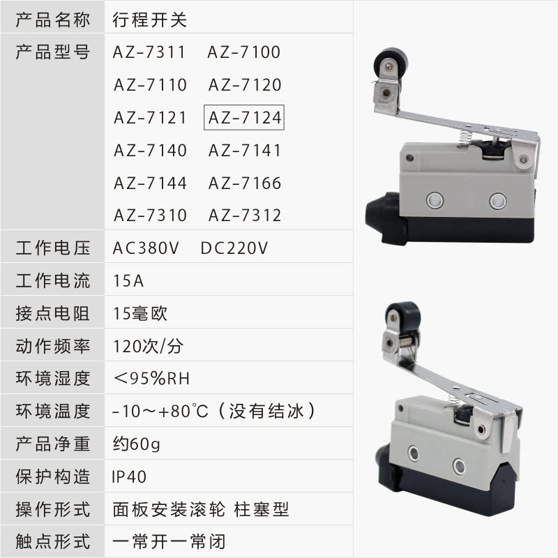 Переключатель маршрута AZ-7124 Micro Switch Limited Switch Rolle Wheel Selfeset Concepts часто открыты