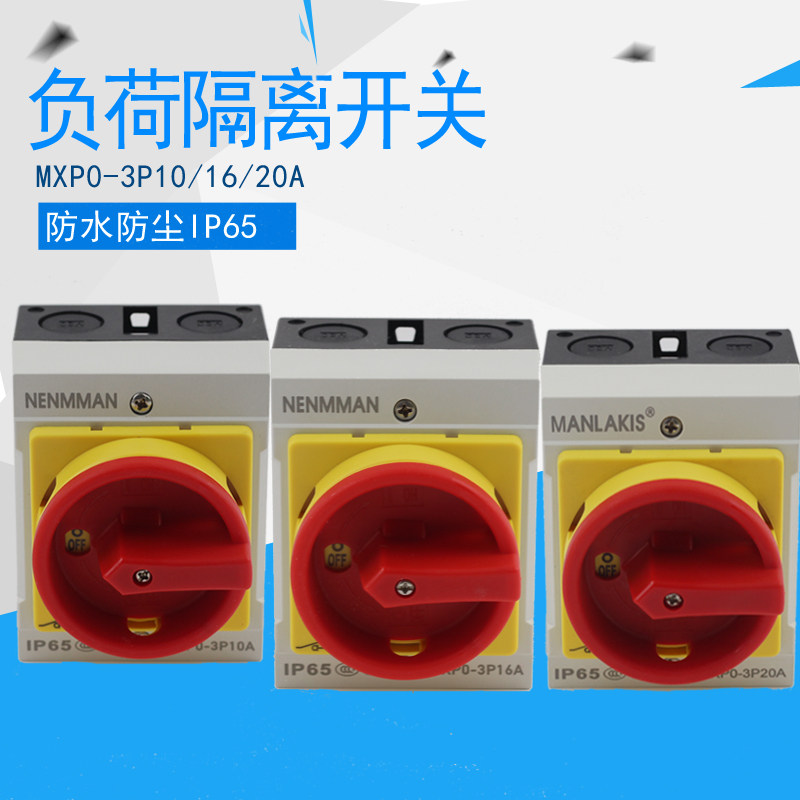 Нагрузка изолированного переключения MXP0-3P10A Наружный водонепроницаемый переключатель 16 Ярко-поверхность Установка промышленная дождь 20а