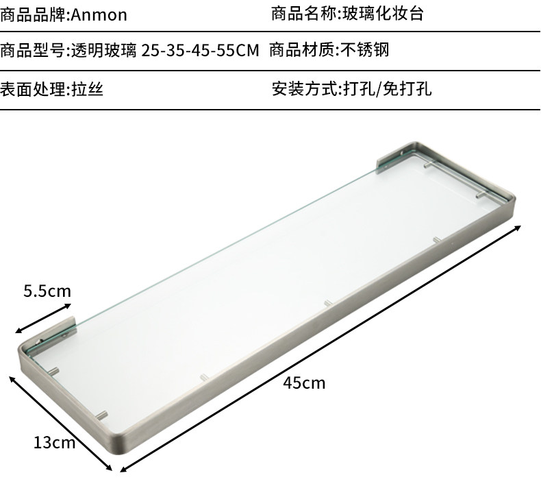 Стекло из нержавеющей стали стеклянная ванная комната стойкая настенная настенная стена -Космета для ванной комнаты, настольная стойка, представленная передняя рама зеркала зеркала