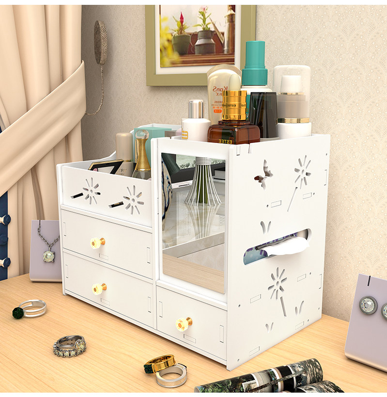 Косметическая коробка для хранения, зеркало, настольный туалетный столик для ухода за кожей, помада, популярно в интернете