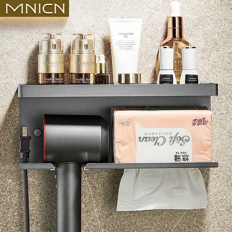 Оружейной пепельный феном, стоящий на стойке без удара в ванную комнату для волос в ванной комнате для волос сушилка для волос.