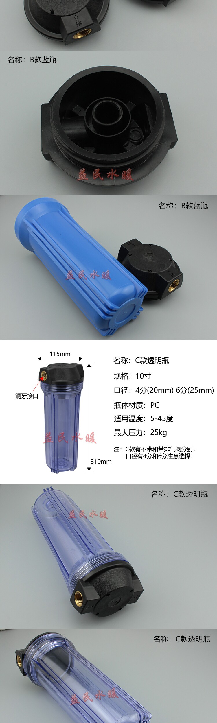 10 -зонтальный прозрачный взрыв -Проницаемый фильтр бутылка передний фильтр передний фильт