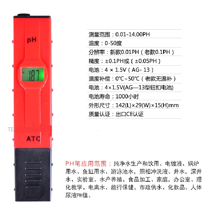 Высокий измеритель кислотности PH ручки с тестовым карандашным карандашом для тестового карандаша для PH PH.