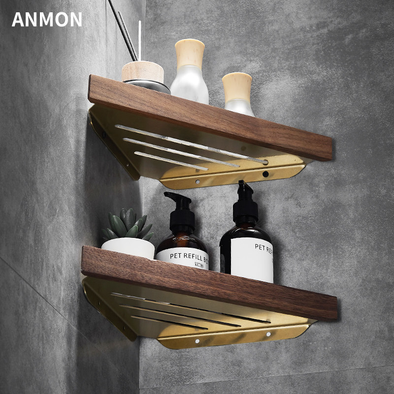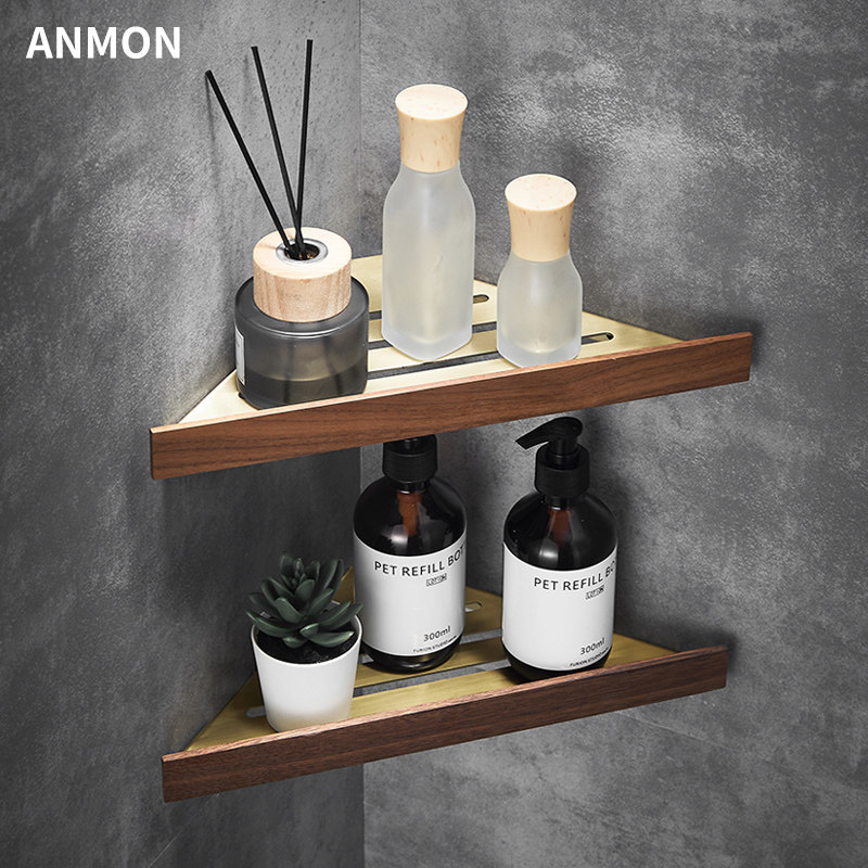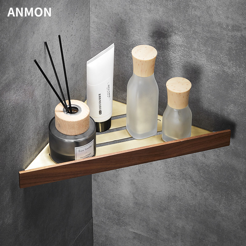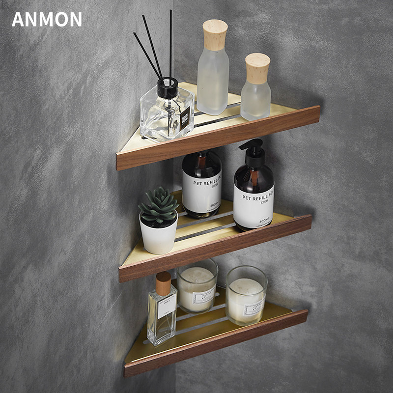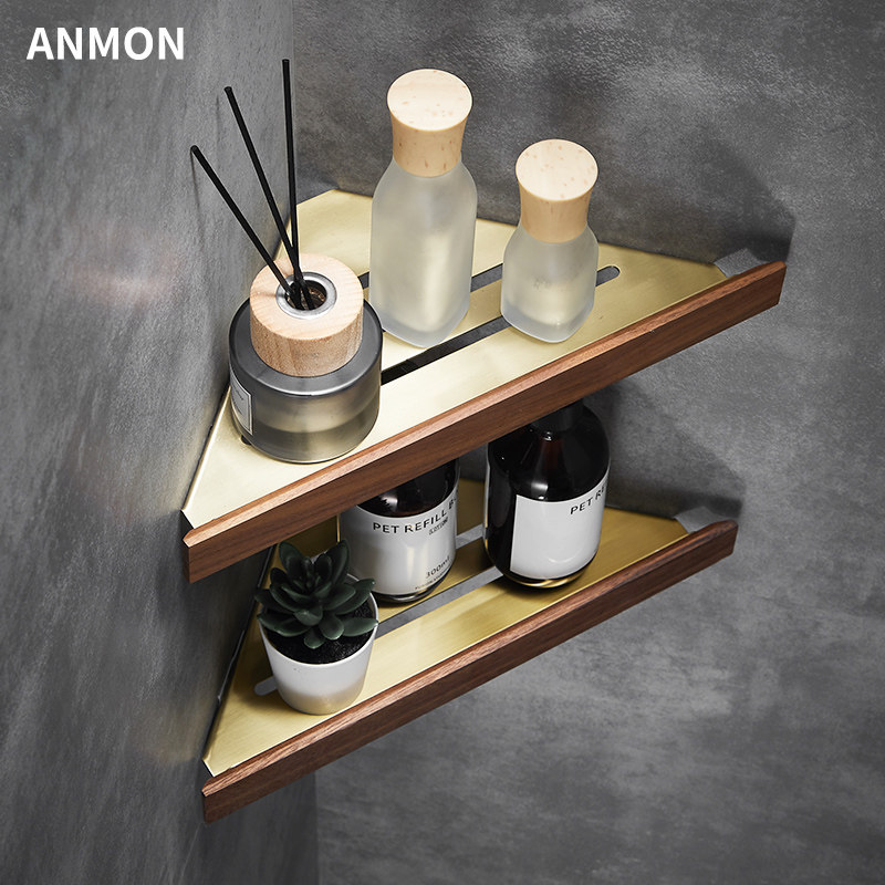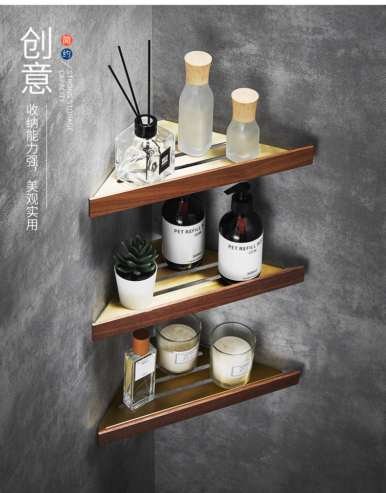 Шампунь, гель для душа, золотая треугольная угловая рама из натурального дерева