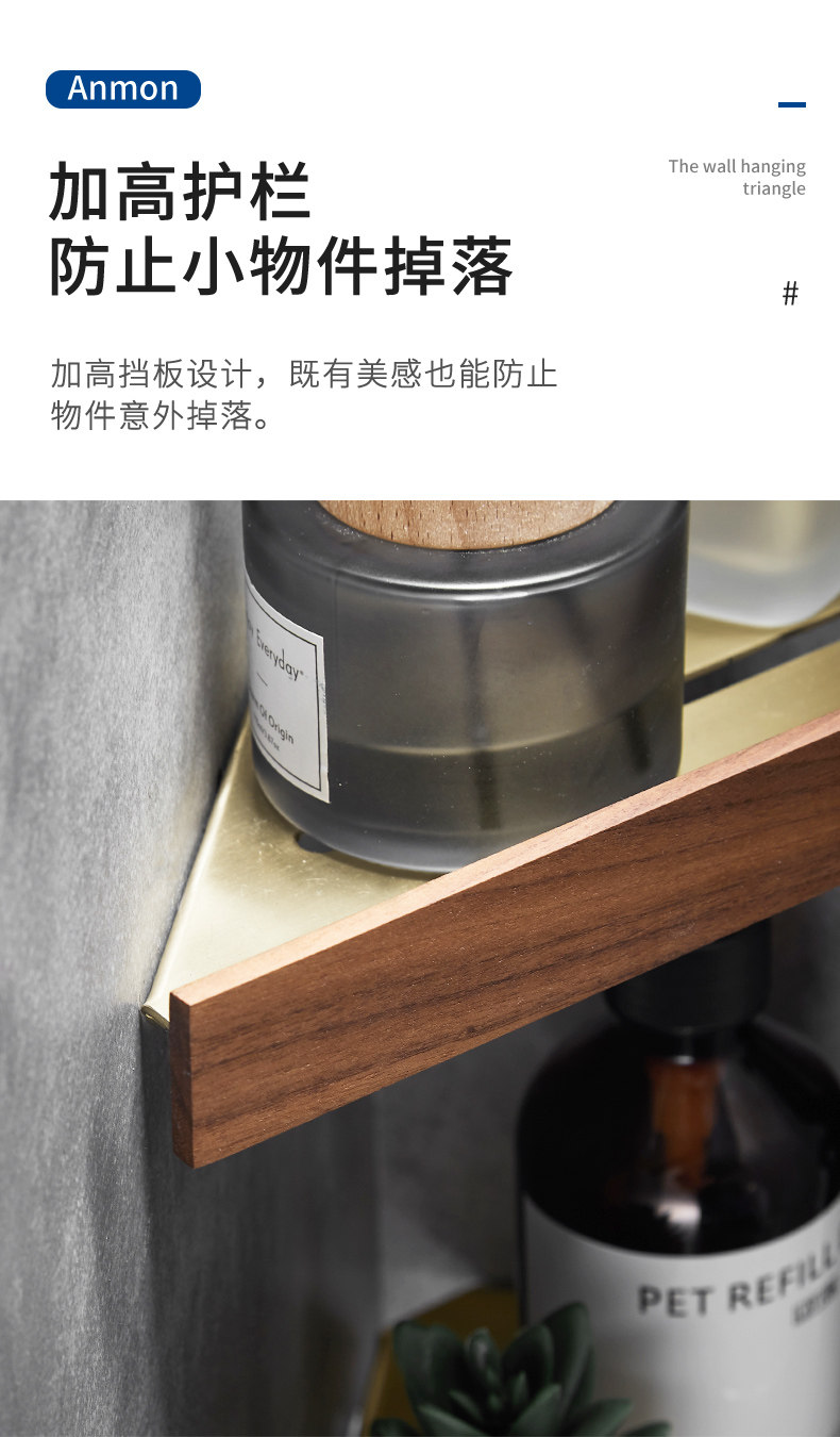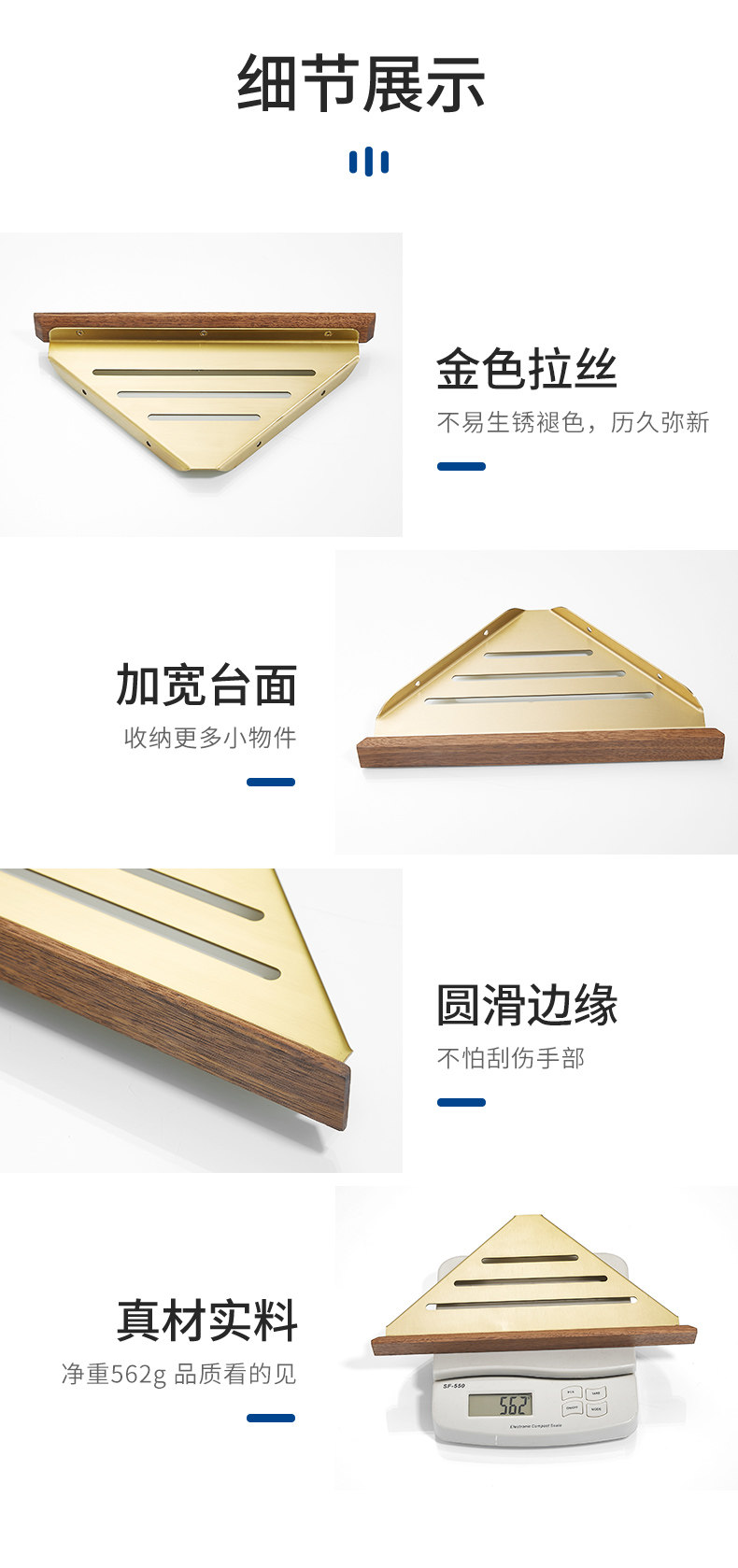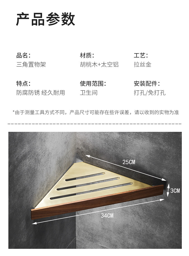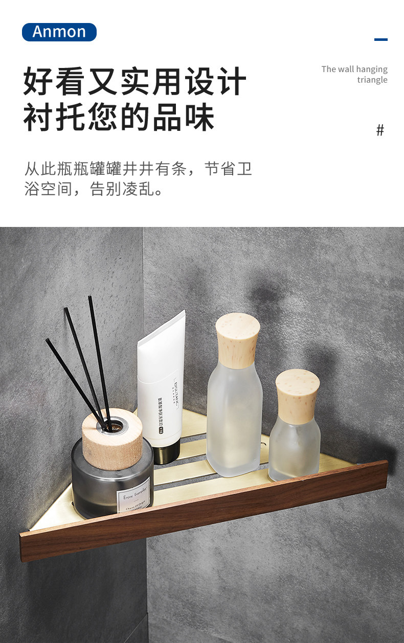 Шампунь, гель для душа, золотая треугольная угловая рама из натурального дерева