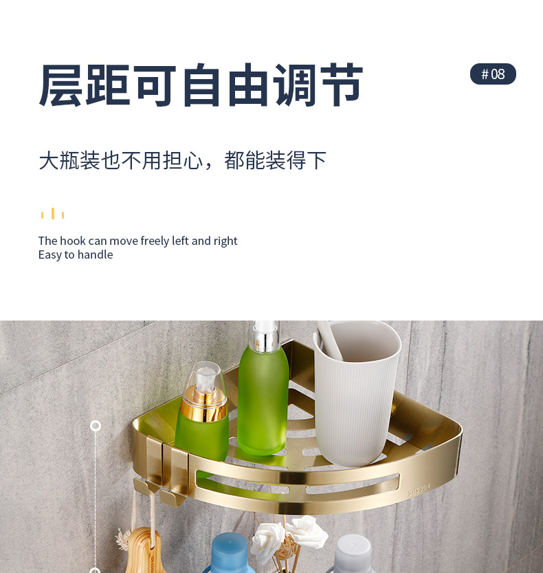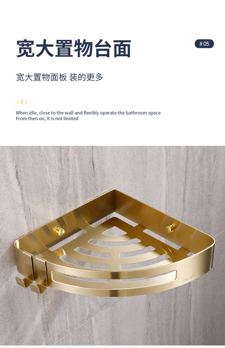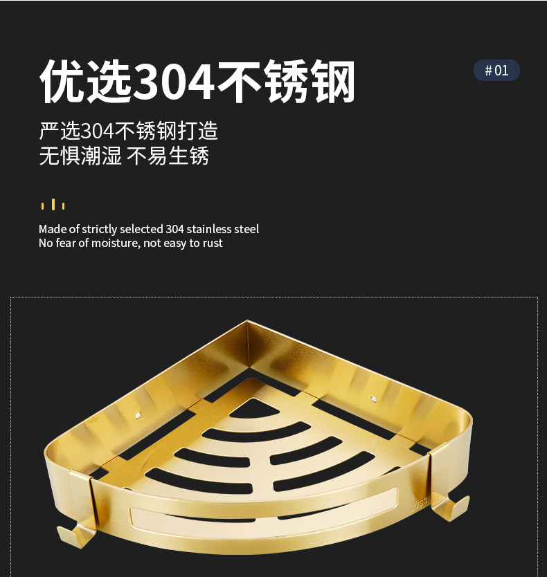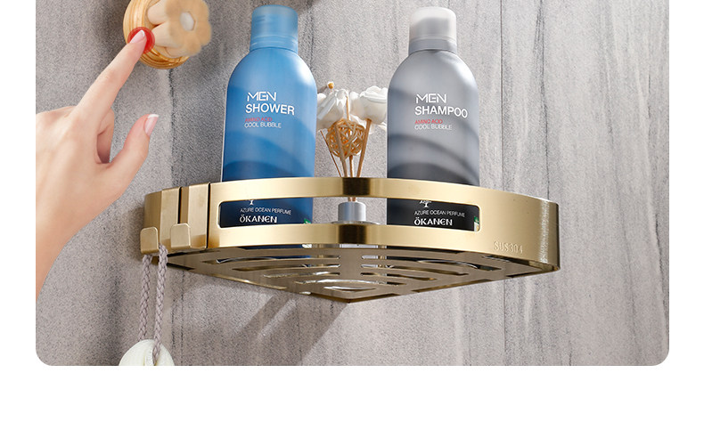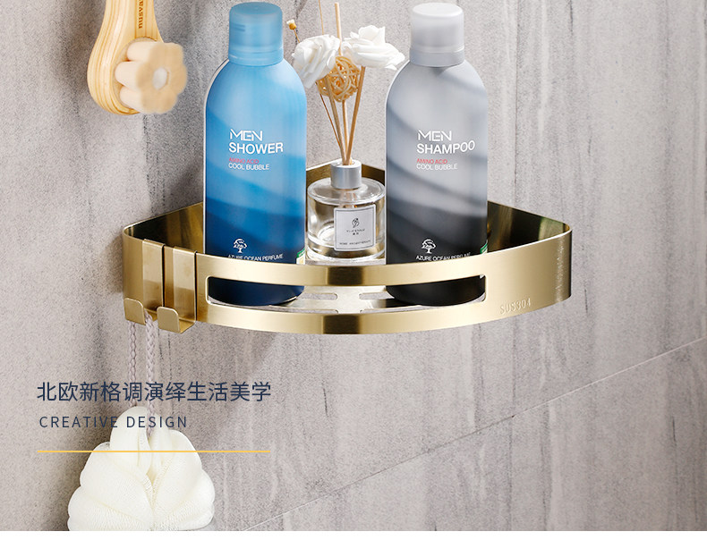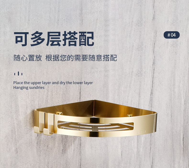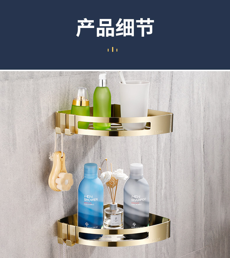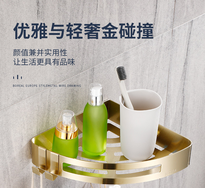 Стеллажи для ванной комнаты Избегайте удара 304 туалетная стена из нержавеющей стали -золотая световая роскошная ванная комната для ванной комнаты двойной слой треугольник