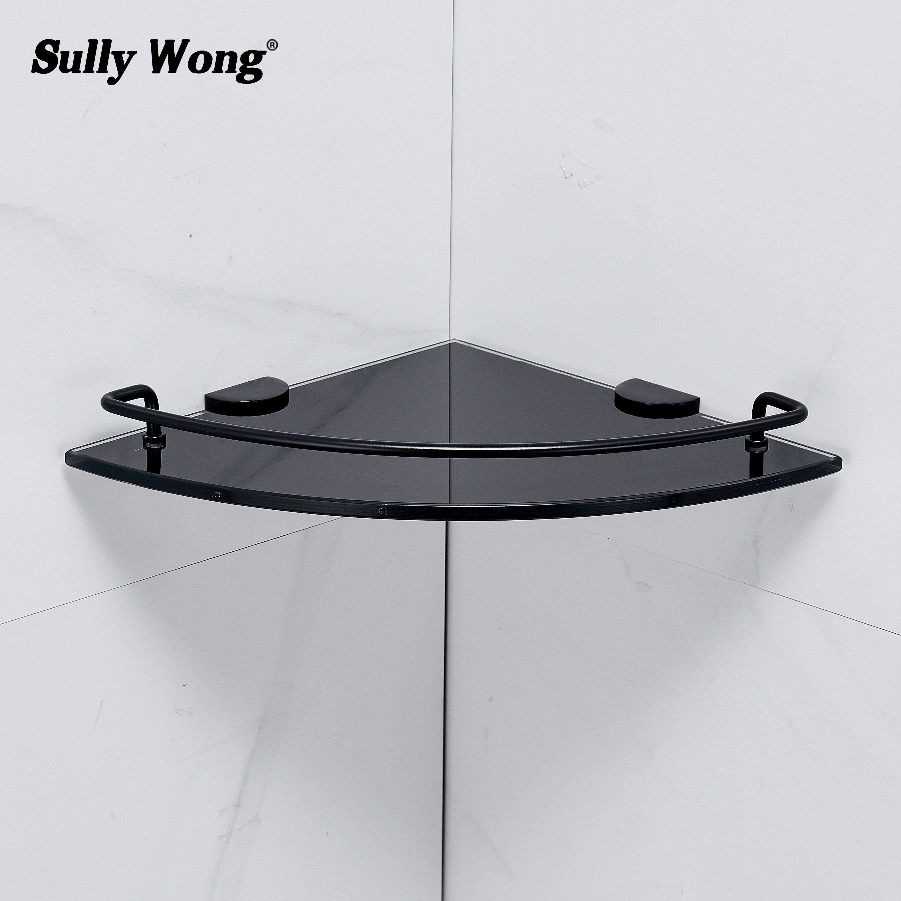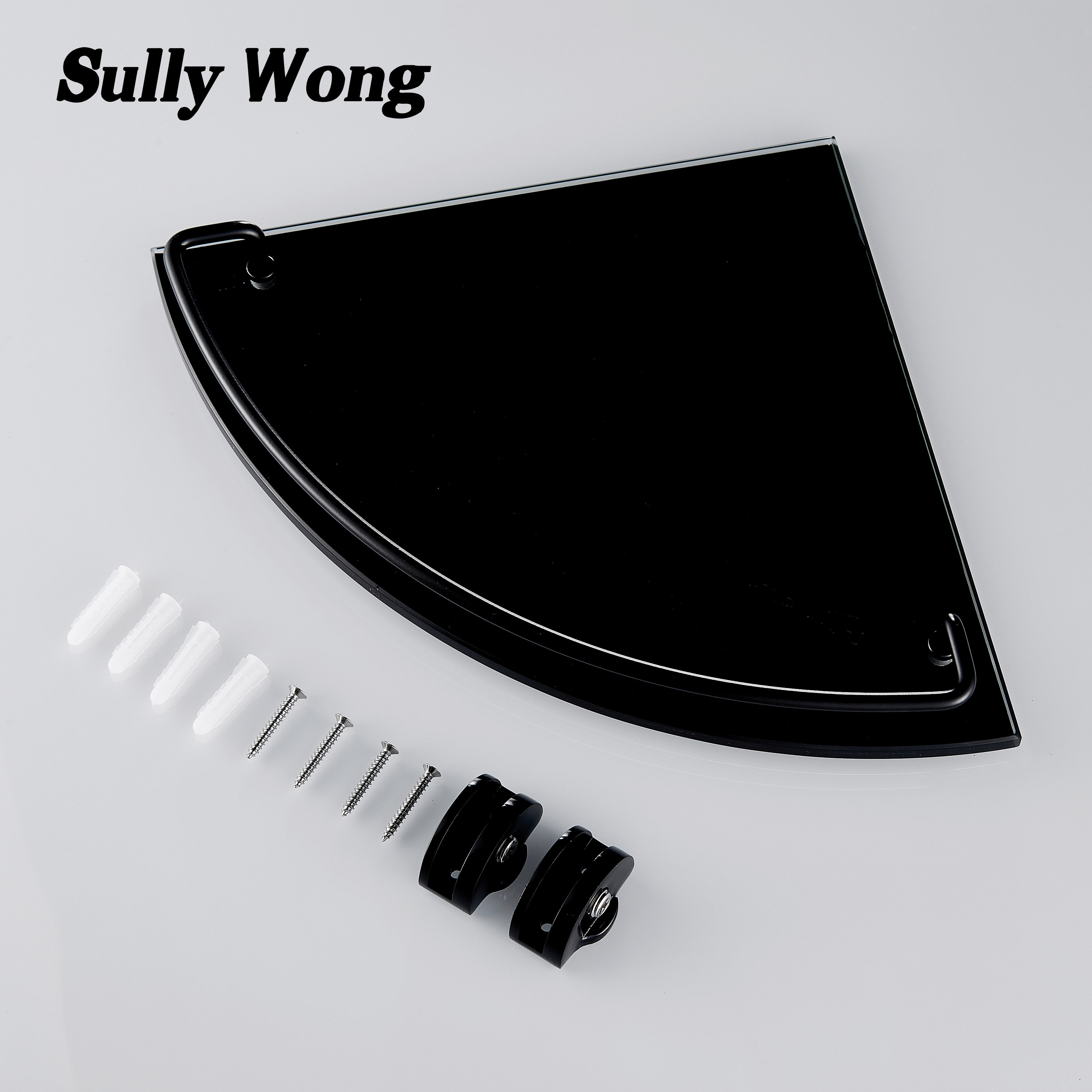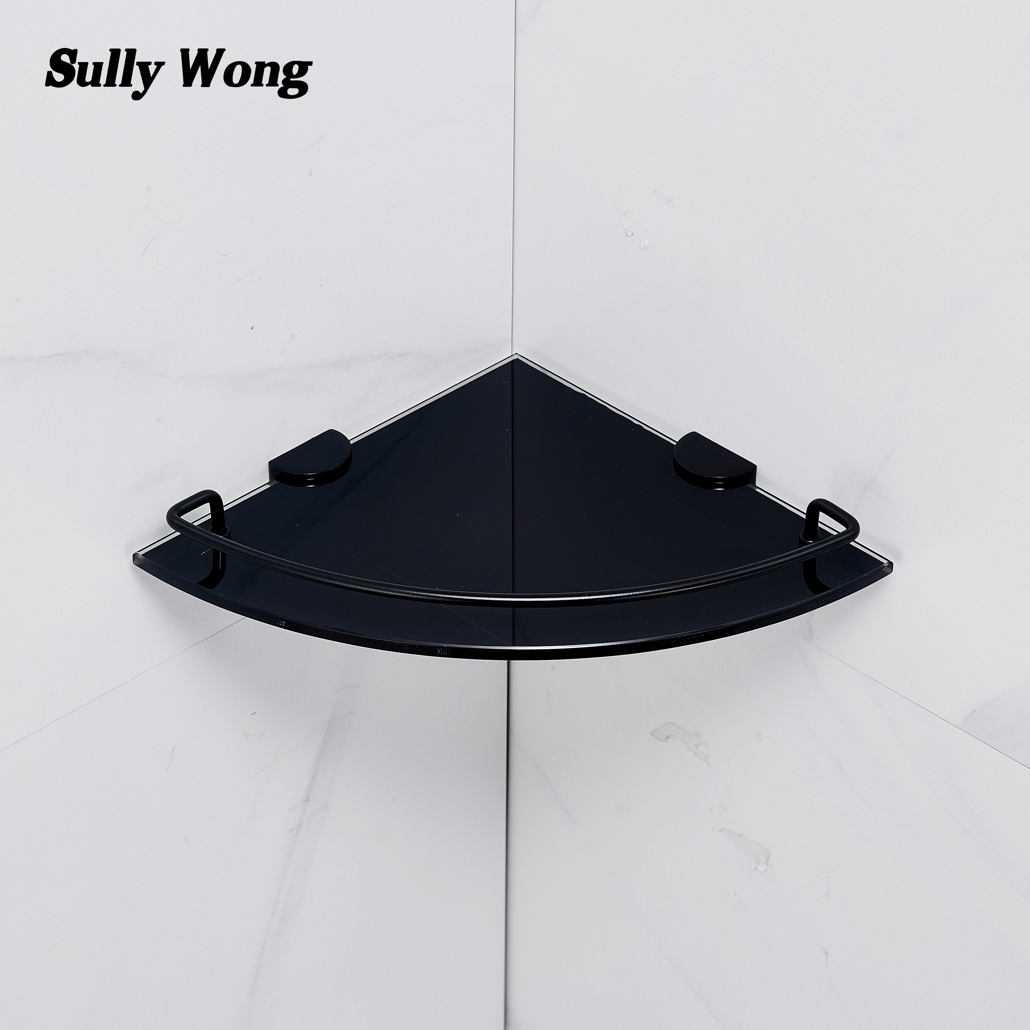 Нержавеющая сталь душевая комната угловая веерообразная стеклянная полка для ванной комнаты штатив из закаленного стекла, окрашенный в черный цвет