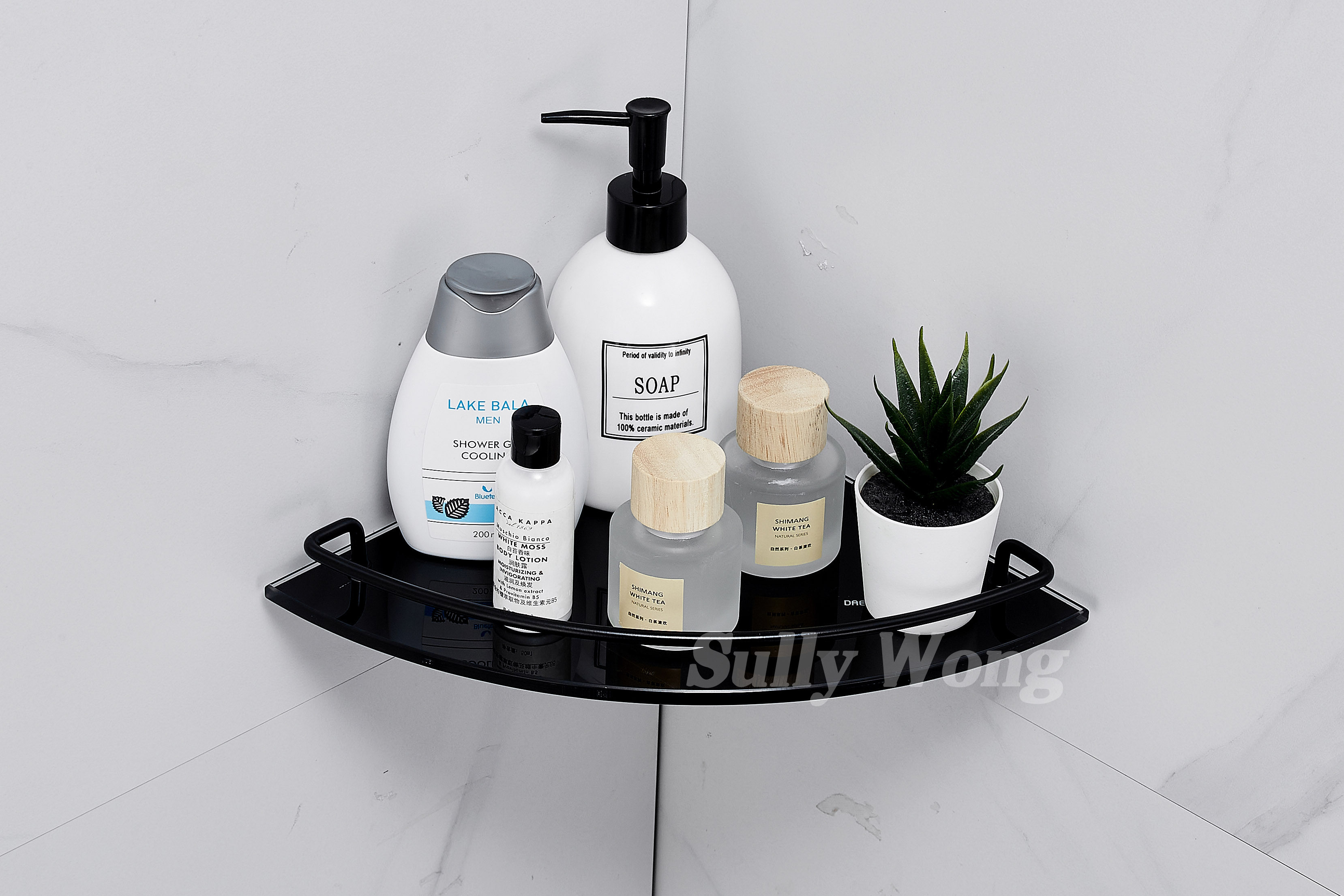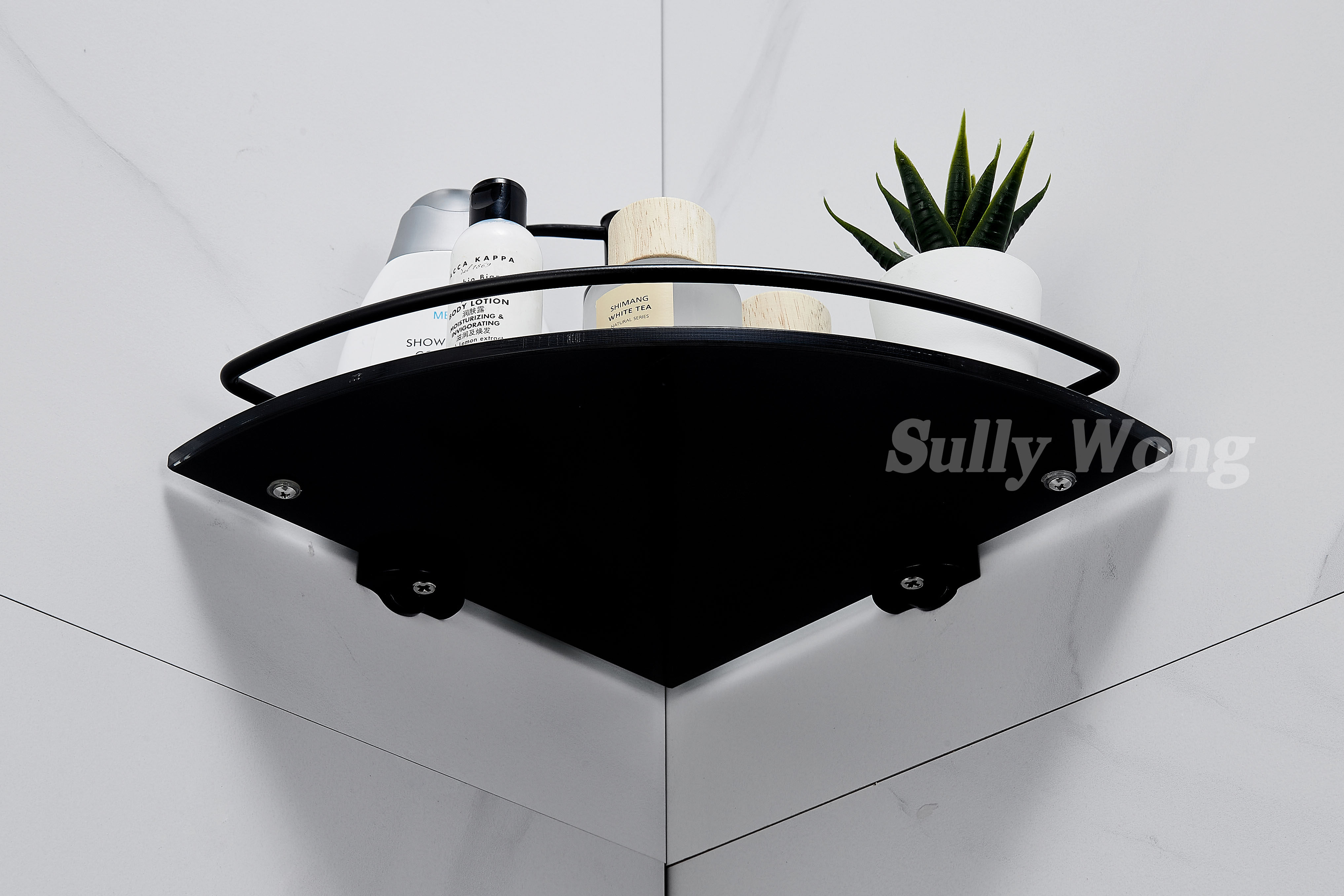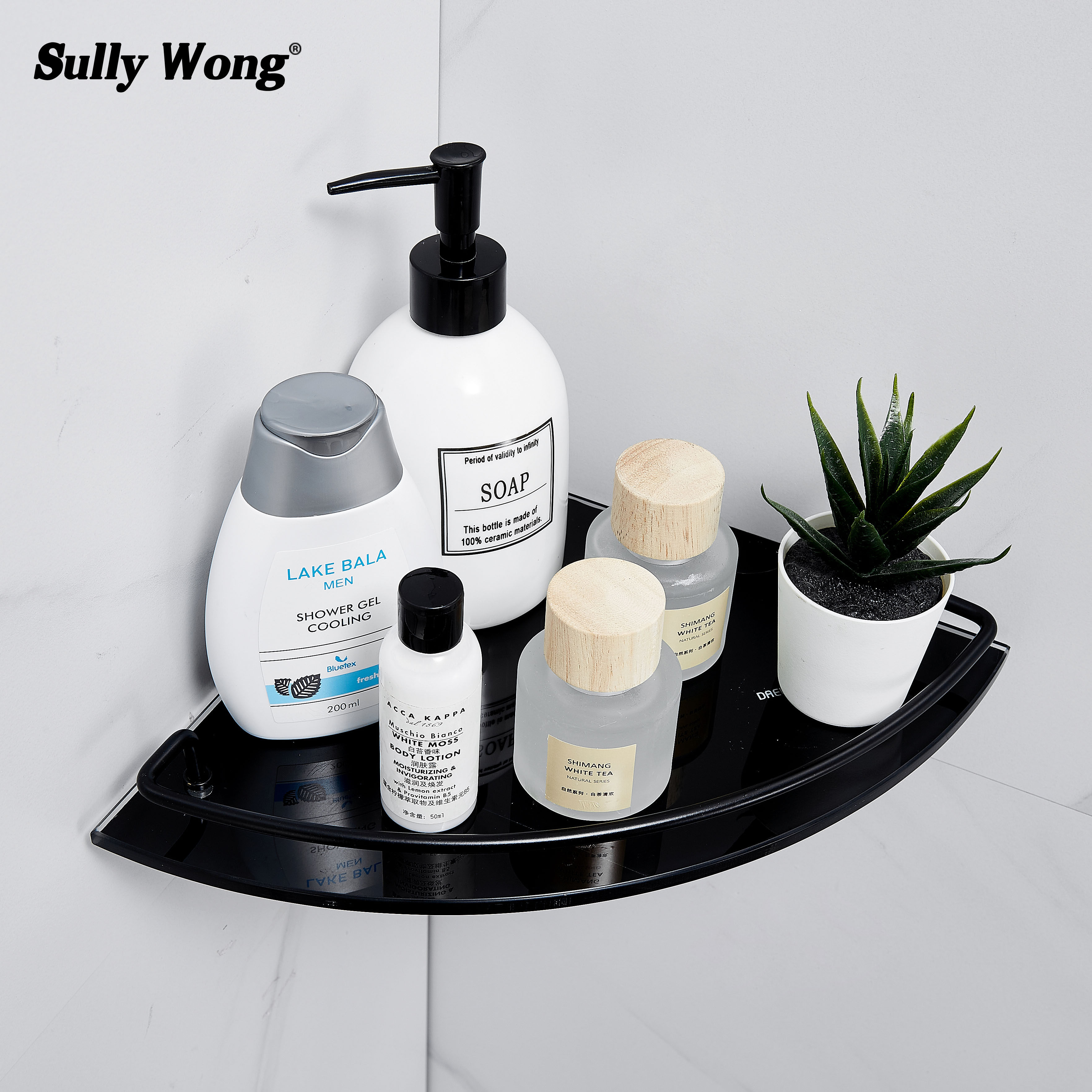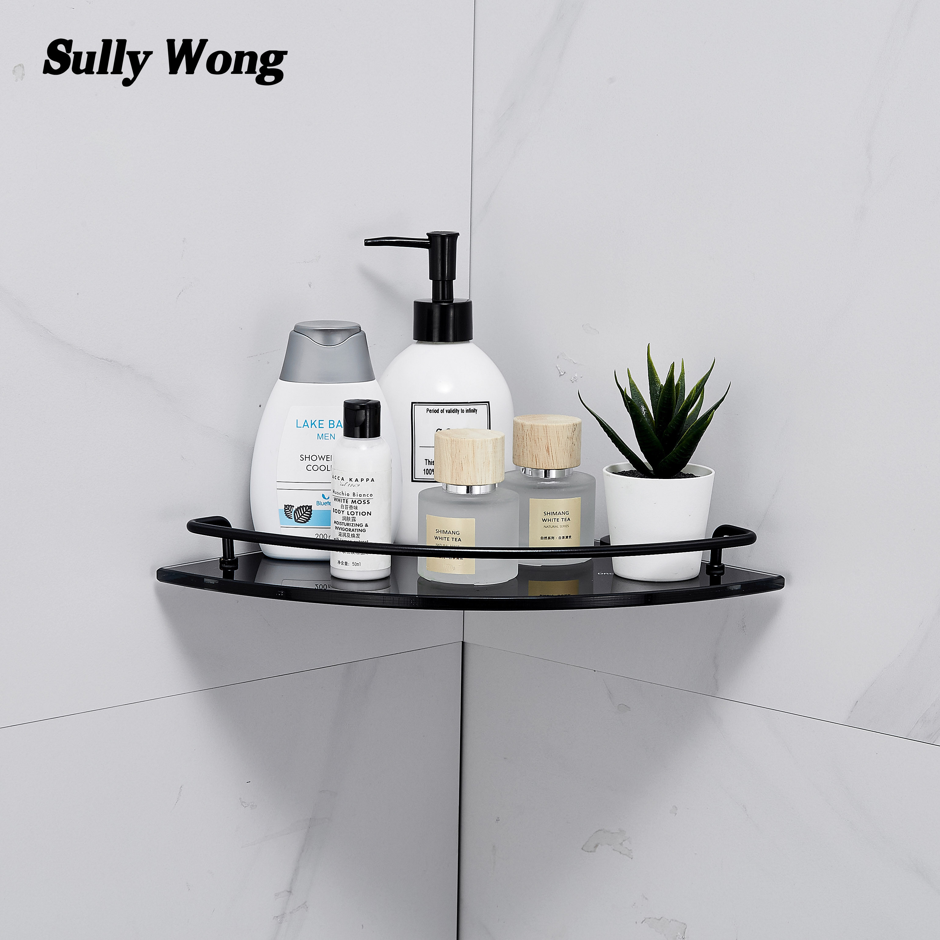 Нержавеющая сталь душевая комната угловая веерообразная стеклянная полка для ванной комнаты штатив из закаленного стекла, окрашенный в черный цвет