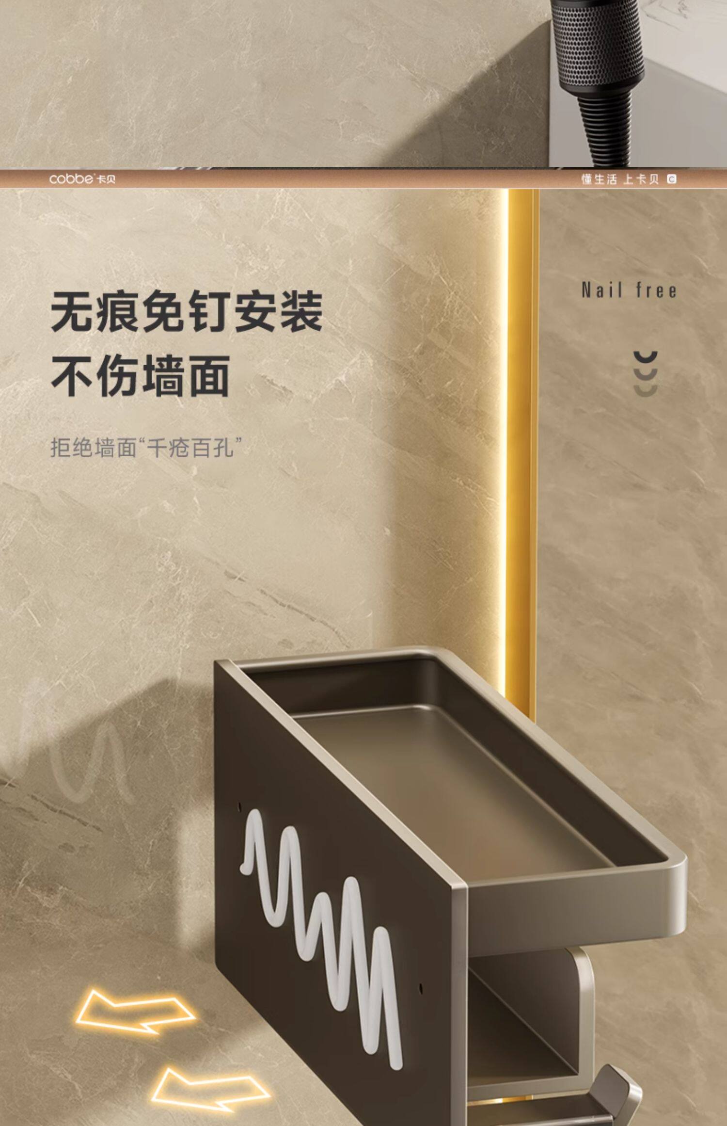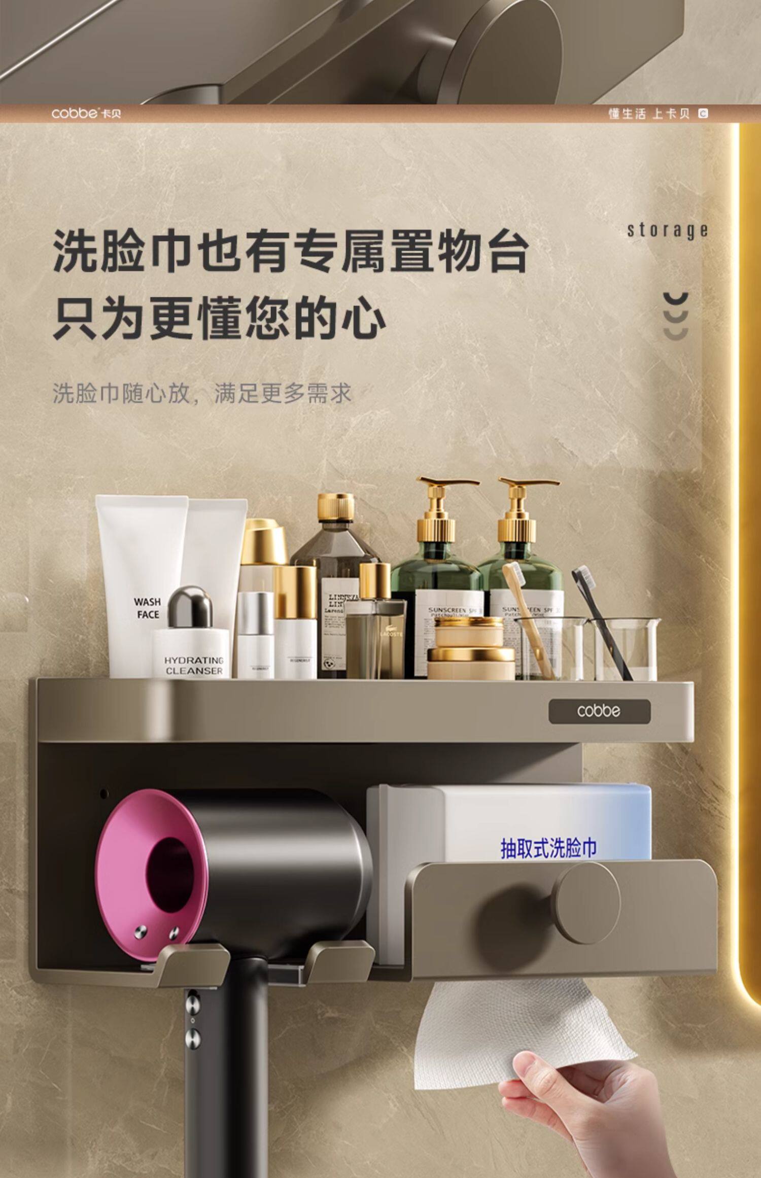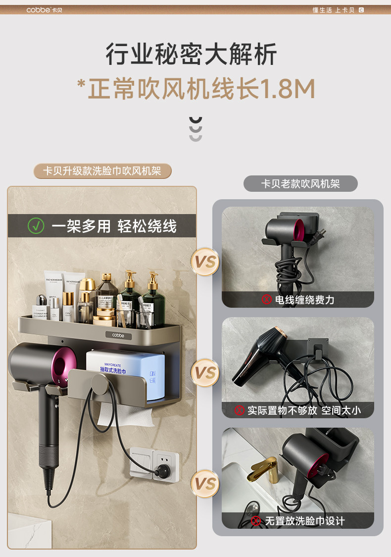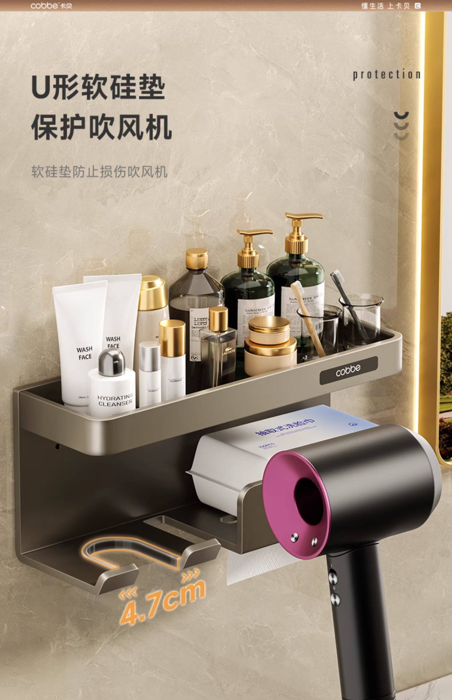 Кабе для хранения волос без удара не ударяя на волосной опоре для ванной комнаты для хранения ванной комнаты