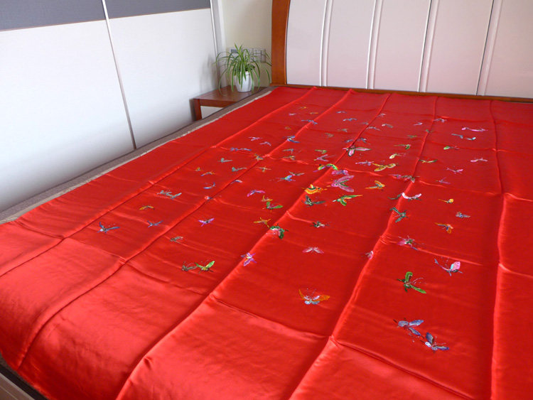 Китайская свадебная шелковая кровать продукт настоящая шелковая мягкая атласная вышивка ручной работы вышит лапшой, сотня бабочек, свадебные подарки, праздничные праздники