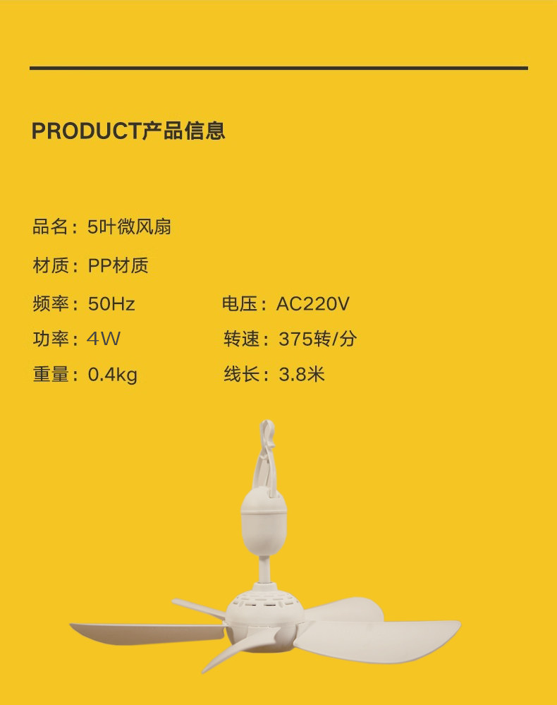 Недавно обновленные пятилистные комары сетевой сеть специального потолочного вентилятора Потолочный вентилятор Pure Mopper Motor Energy Energy и Silent Extension Низкое потребление энергии.