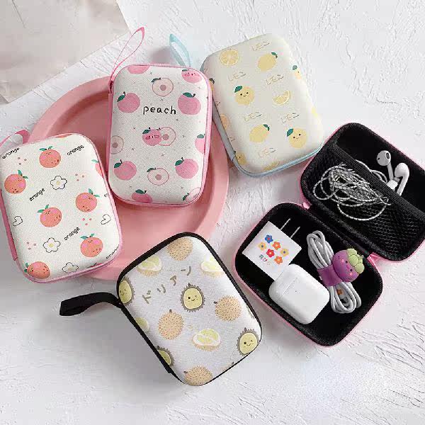 Чехол для наушников с монетой на молнии, зарядка кабеля для передачи данных в фруктовом стиле