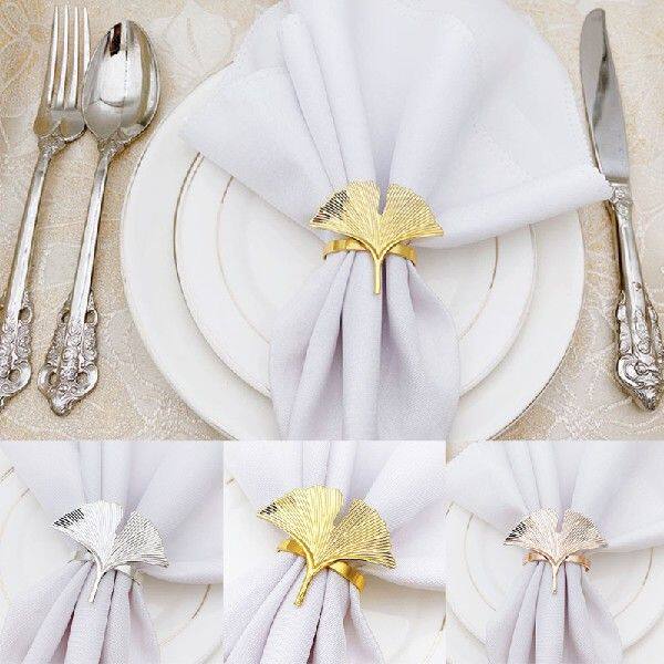 6pcs ginkgo оставляет держатели кольца салфетки для свадебной вечеринки в День матери праздновать фестивальное обеденное столик