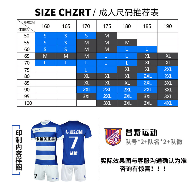 KELME Футбольная форма, комплект для взрослых с круглым воротником для тренировок, делается под заказ
