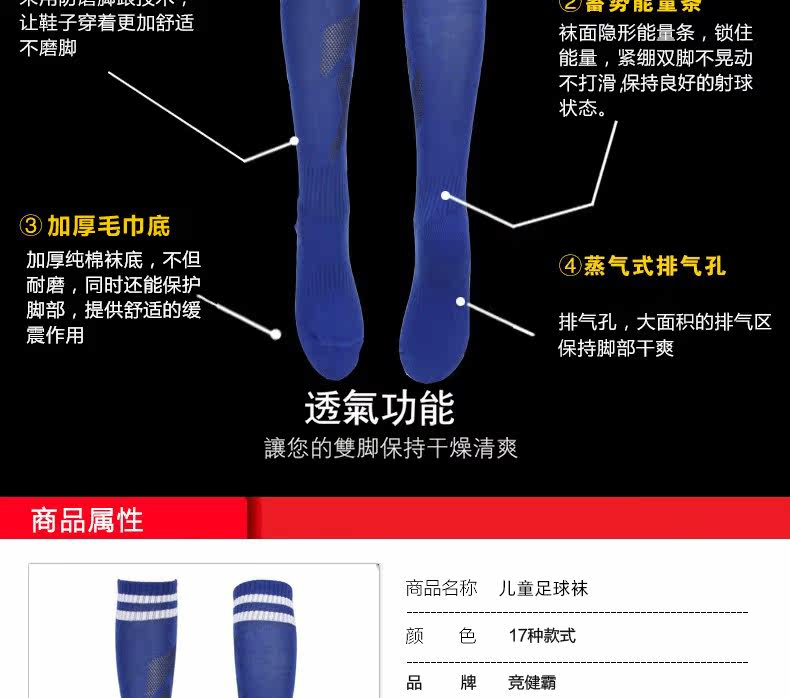 竞健霸 Футбольные летние спортивные носки, подходит для подростков, увеличенная толщина