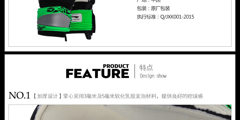Li Ning, профессиональный футбольный вратарь подходит для мужчин и женщин, нескользящие натуральные перчатки