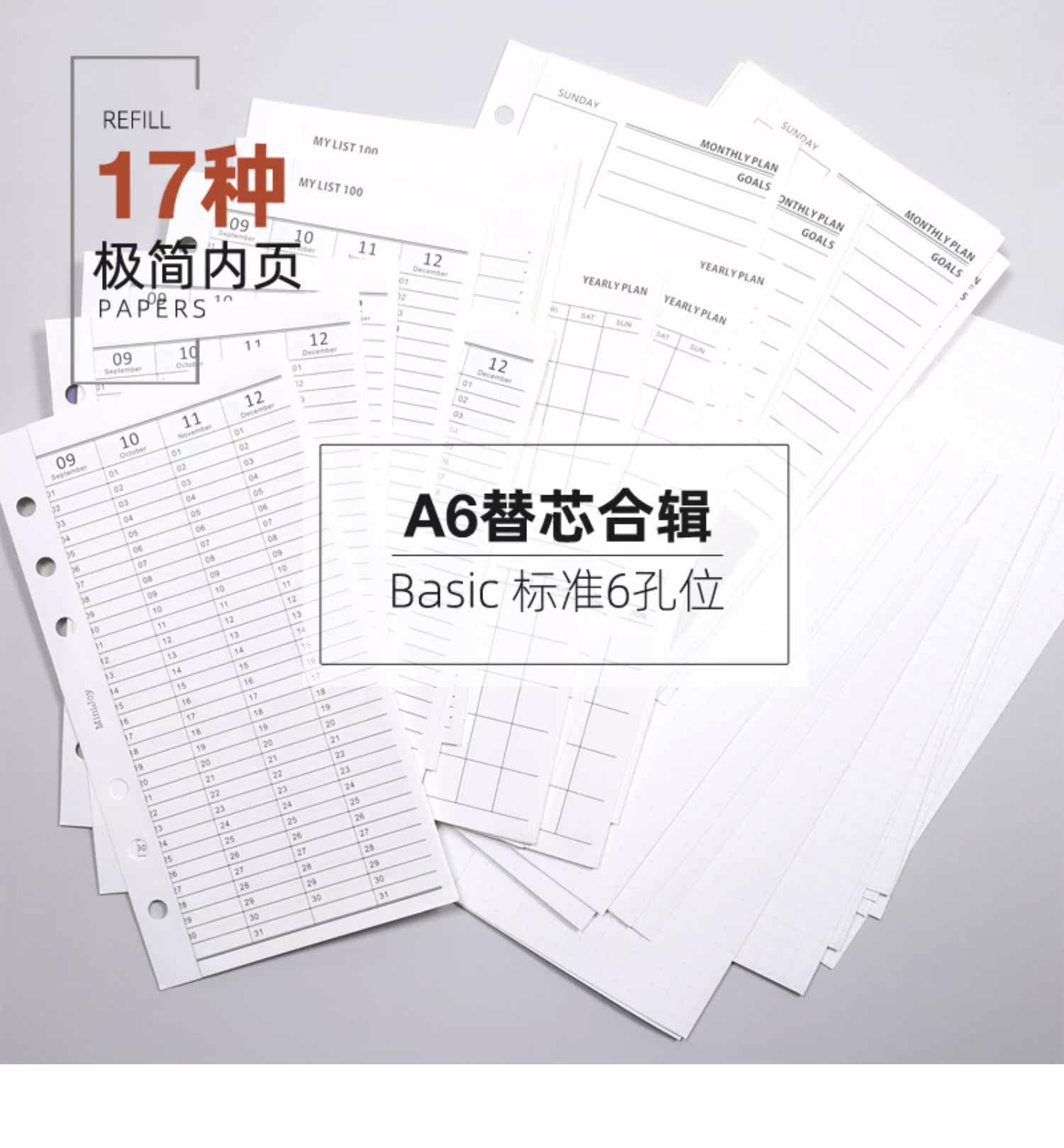 Справочник, сменный стержень для вкладных листов, 6 отверстий формата А6 на каждую коллекцию листовой бумаги, одна квадратная матричная пустая цветная базовая внутренняя страница