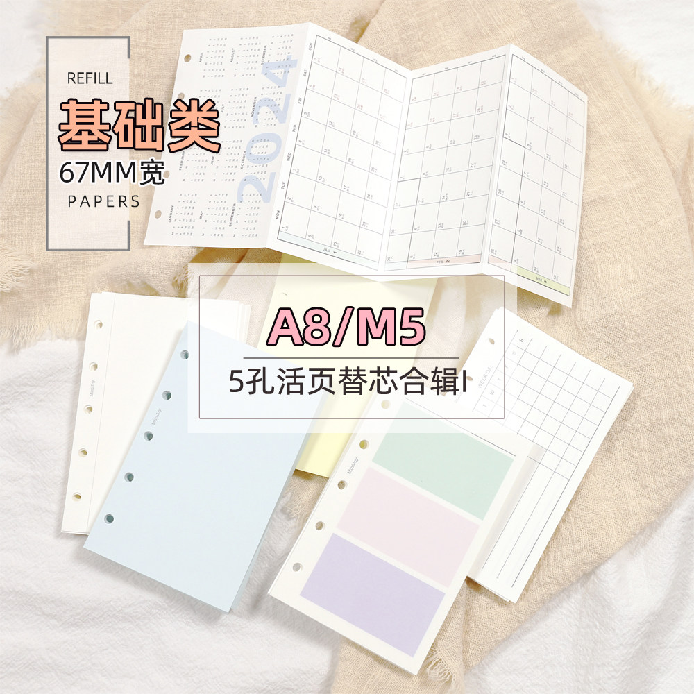 Блокнот M5 A8 с 5 отверстиями, сменная бумага с отрывными листами, основная коллекция, квадратная пустая точечная матрица, горизонтальная линия, базовая внутренняя страница, 67 мм