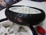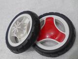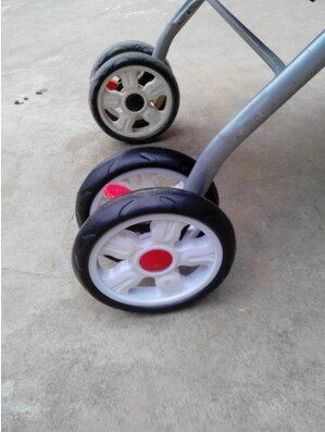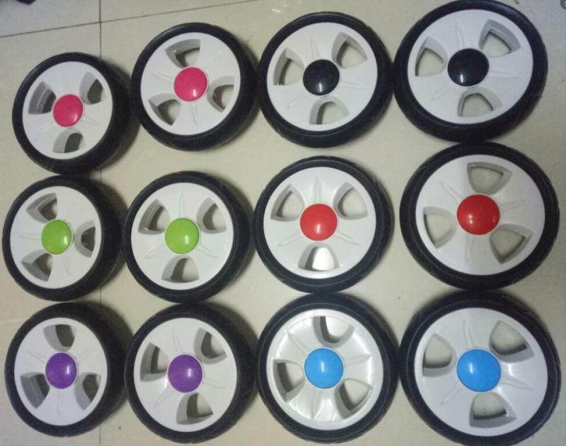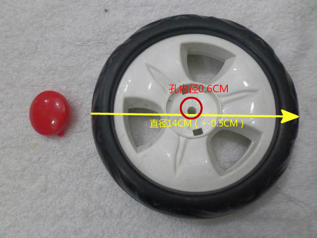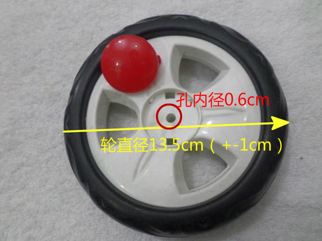 (Два колеса представляют собой два одноразовых промежуточных пластиковых деталей (переднее колесо).ПолемКолесо можно разобрать и заменять, а рядом с колесом есть крышка, которая открывает крышку корневым валом и фиксирует колесо. Подключено, а затем фиксируется, колесо можно свернуть ,,, диаметра из измерения колеса и внутреннего диаметра среднего отверстия /// или есть изображение.  положение на подноже колеса