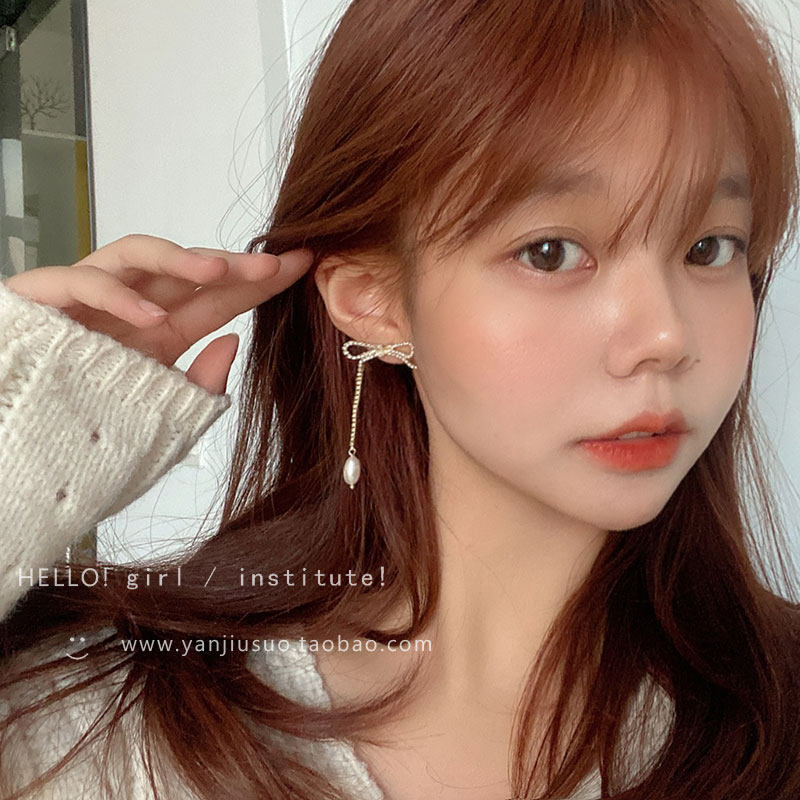 Изысканные модные длинные серьги с бантиком из жемчуга, изысканный стиль, популярно в интернете, по фигуре
