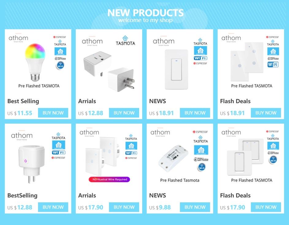 Athom US Switch Pre Flashd Tasmota ESP8266 WiFi SWI SWI