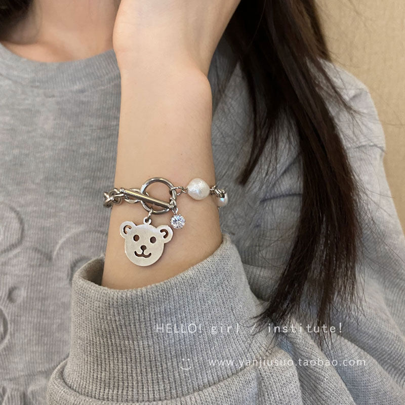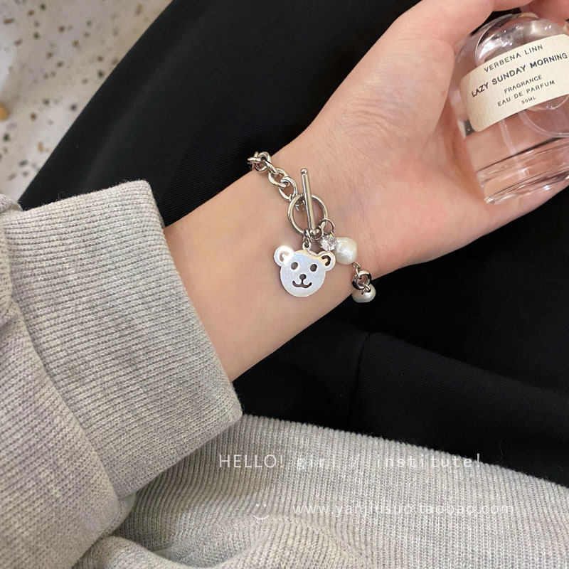 - Серебряный браслет из жемчуга, с медвежатами
