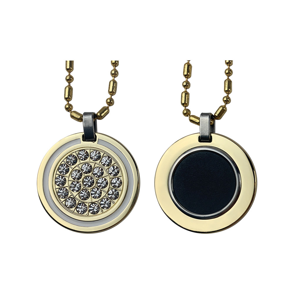 Отрицательное ионное переднее золото алмазооооооооженное колье из нержавеющей стали Минеральное материал Биологический энергия здравоохранение вулканическое каменное каменное подвеска