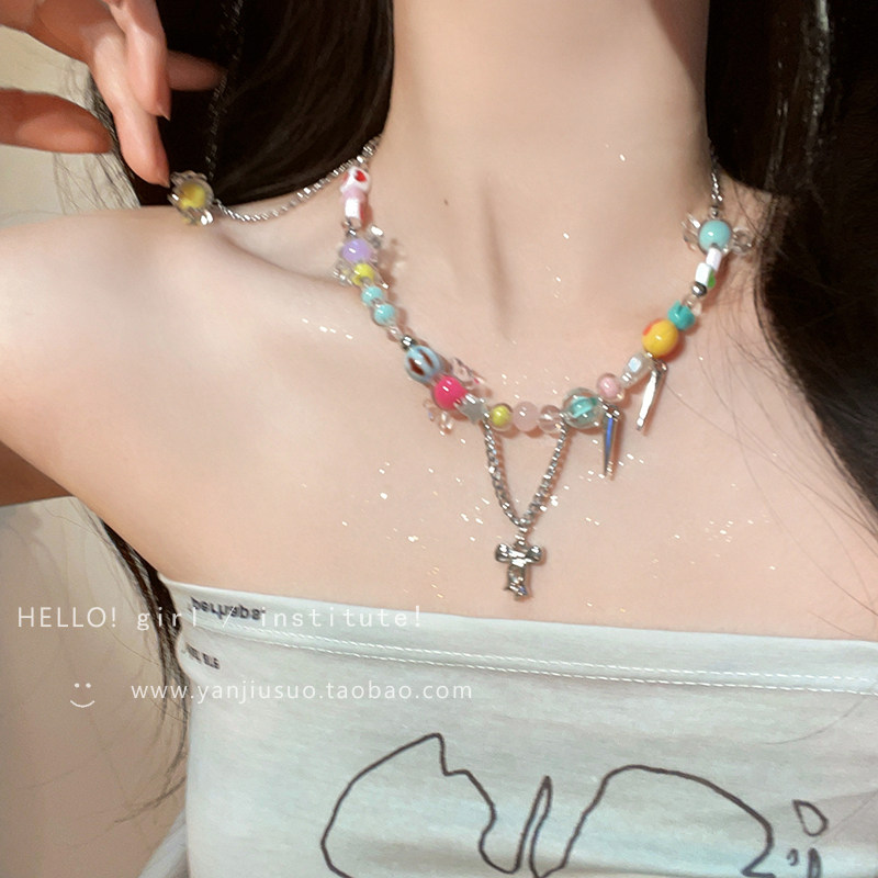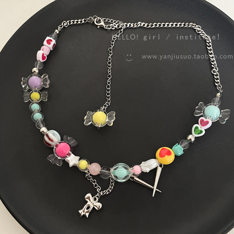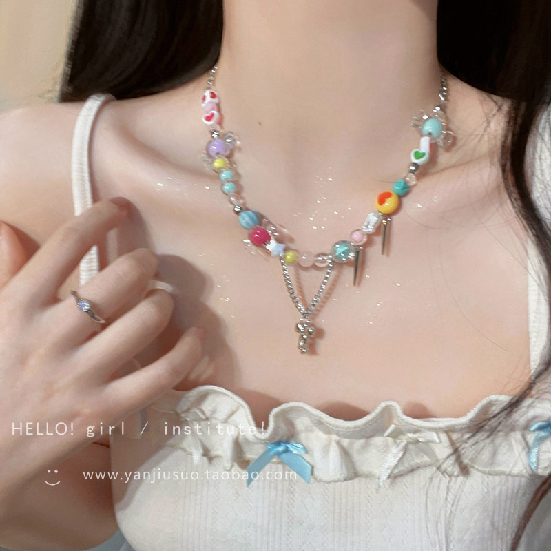Радужное ожерелье, аксессуар, цепочка до ключиц, популярно в интернете