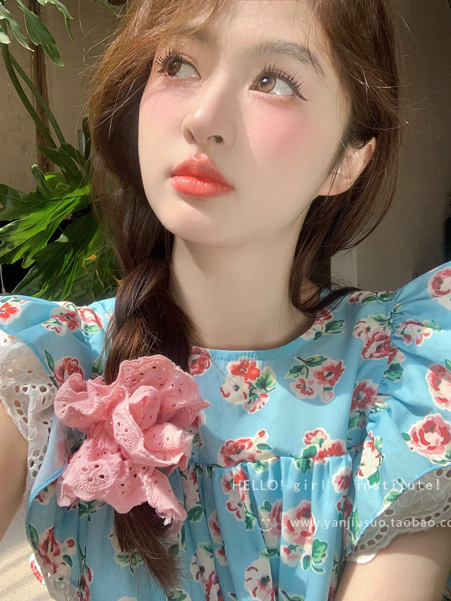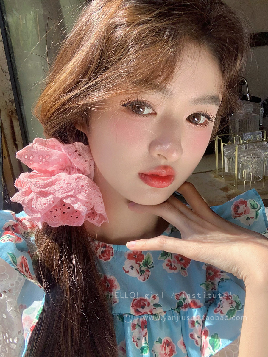 Чжао Луси, та же самая ретро -атмосфера, французские кружевные волосы Кругные рабочие, вышитые, вышитые головы цветочные волосы