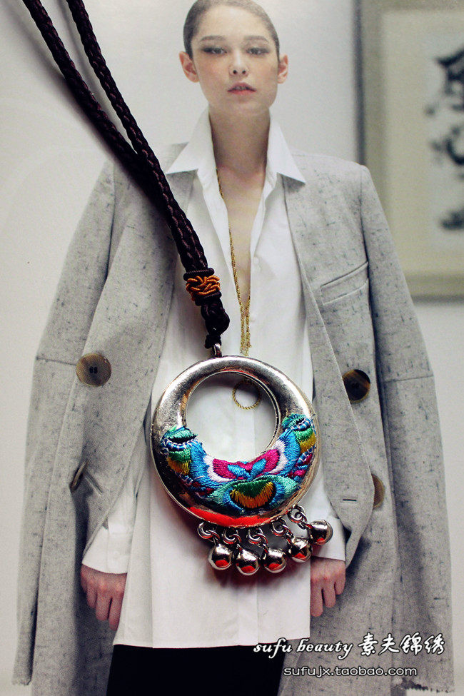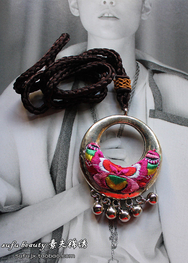 Детский материал: машинная вышивка + тибетское серебро.