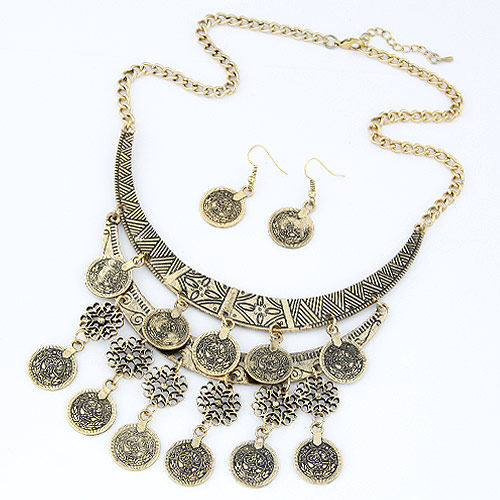 Ретро монеты с кисточками, ожерелье, цепочка до ключиц, чокер, европейский стиль, женский стиль