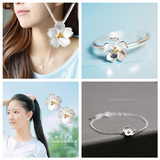 Японский комплект, ожерелье и браслет, свежая цепочка до ключиц, аксессуар, серебро 925 пробы, простой и элегантный дизайн, в цветочек