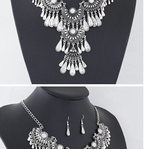 Ретро серебряное ожерелье, монеты с кисточками, длинный свитер, декор, аксессуар, европейский стиль, стиль бохо