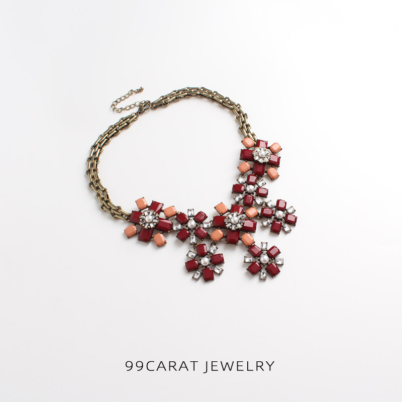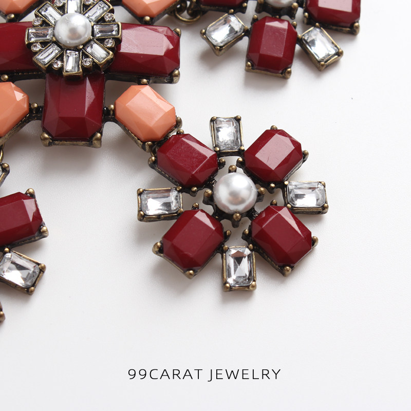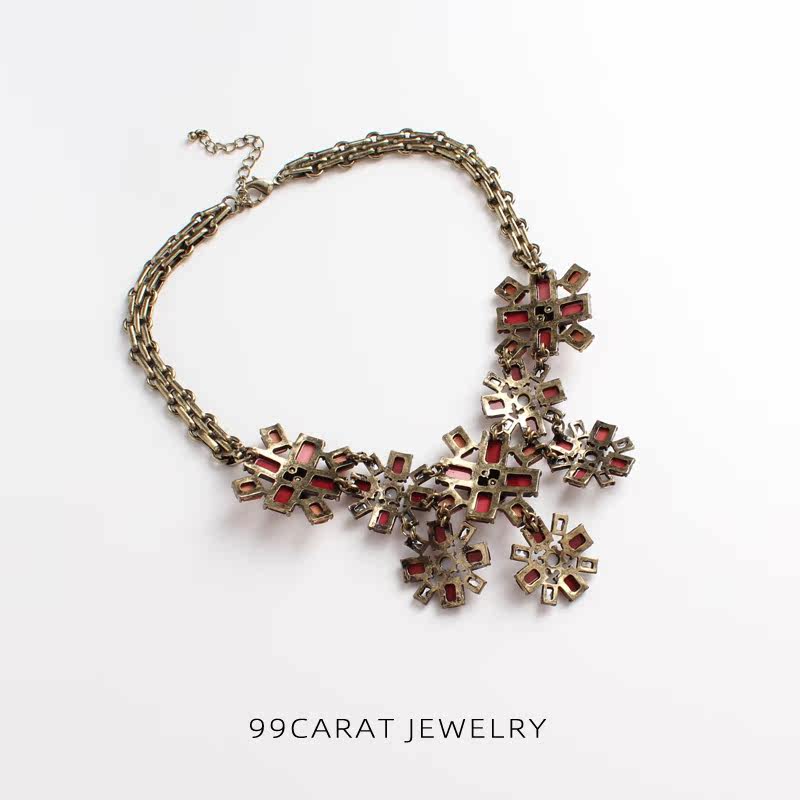 Девяносто -девянные караты 2 европейские и американские ювелирные украшения ретро старые модные красные цветы.